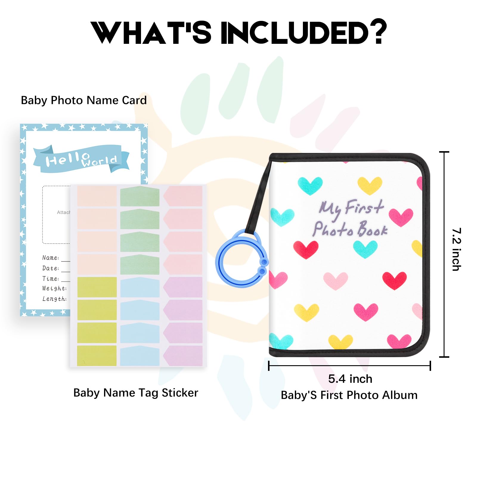 FULLY FUNCTIONAL: Baby photo book comes with an extra baby safety mirror and round plastic hook, baby safety mirror can inspire child's imagination & curiosity, and the plastic clip will allow it to be easily attached to a pram, bouncer or other item and not get lost.