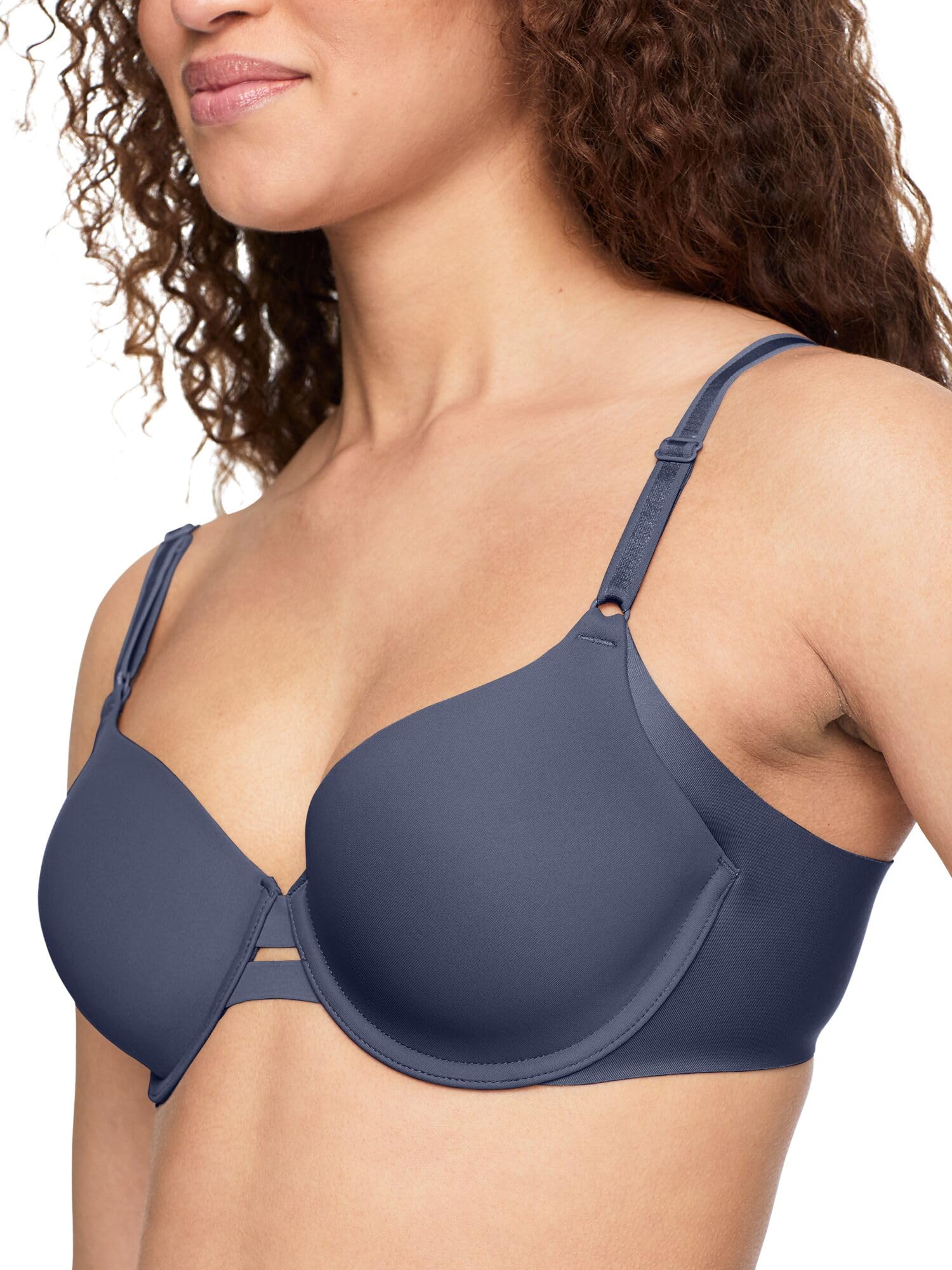 Description Smooth things over with this Warners® Blissful Benefits underwire lightly-lined t-shirt bra with side-smoothing panels and elastic-free sides for a seamless look. Flexible contour cups and convenient front-adjustable straps provide the perfect fit for wear-all-day comfort and support.