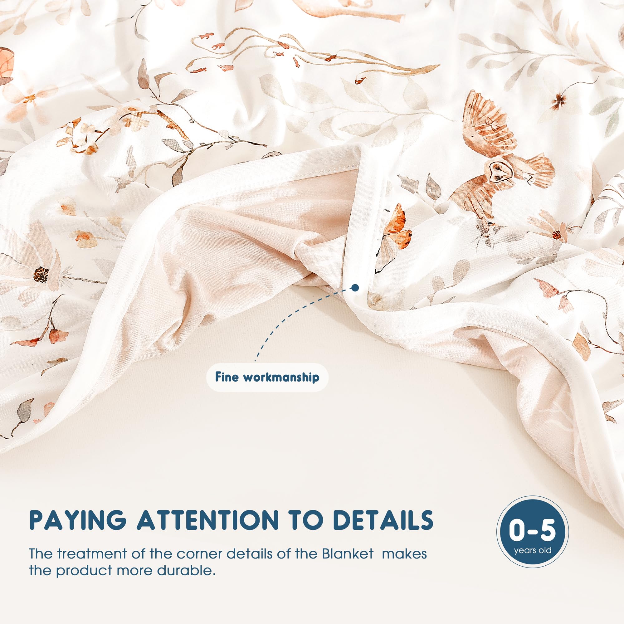 Double Layer: Double layer in medium weight is perfect for all seasons. Measures 34" W x 44" L is great as a swaddle or receiving blanket in cold season and make it as a quilt and play mat in the hot season. The blanket will bring a comfortable sleeping temperature to your baby.