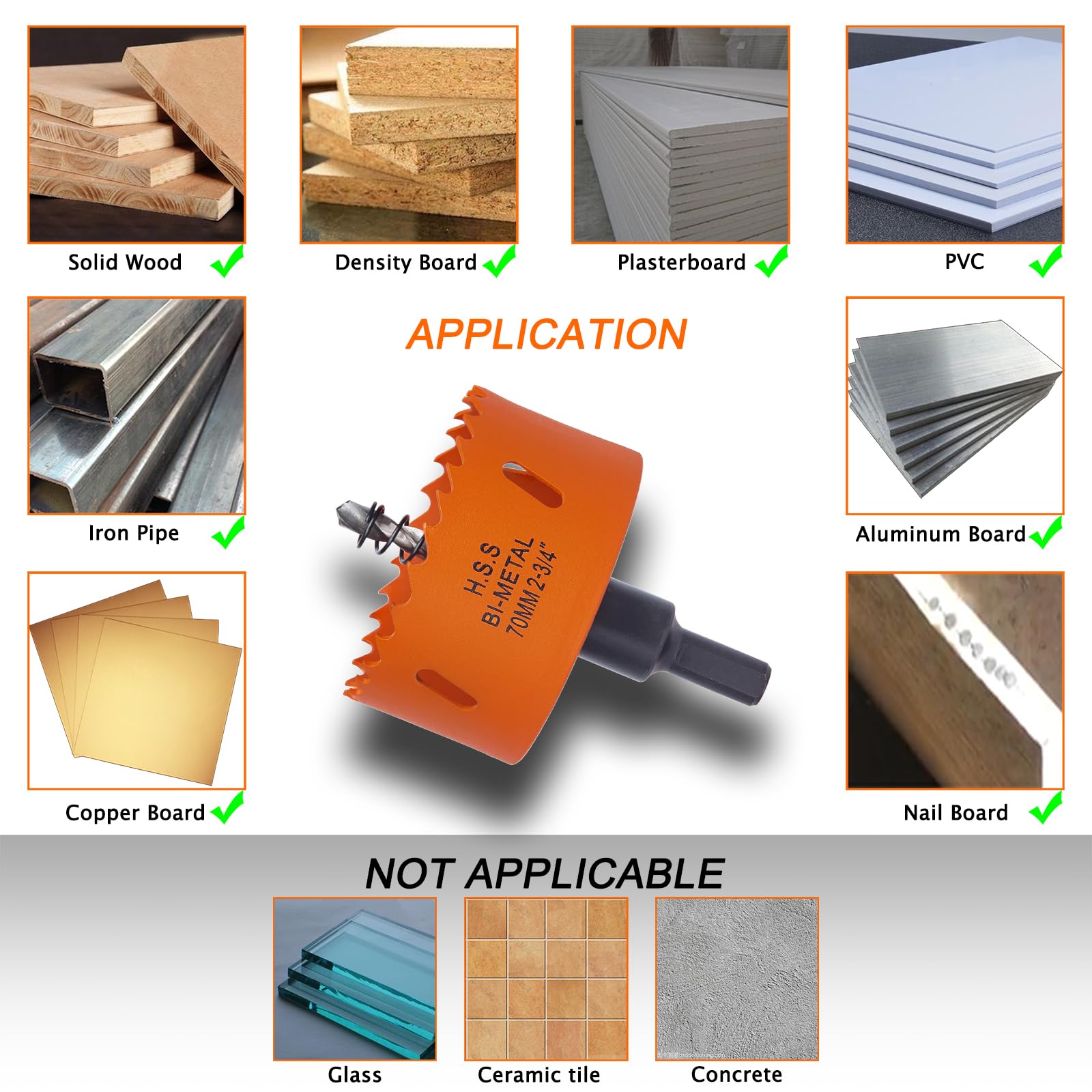 Wide Application: The hole saw can be widely used for cutting thin metals, wood, plater board, plywood, duct, drywall, soft plaster, corn hole boards and plastic, good enough for the average DIYer and professional project
