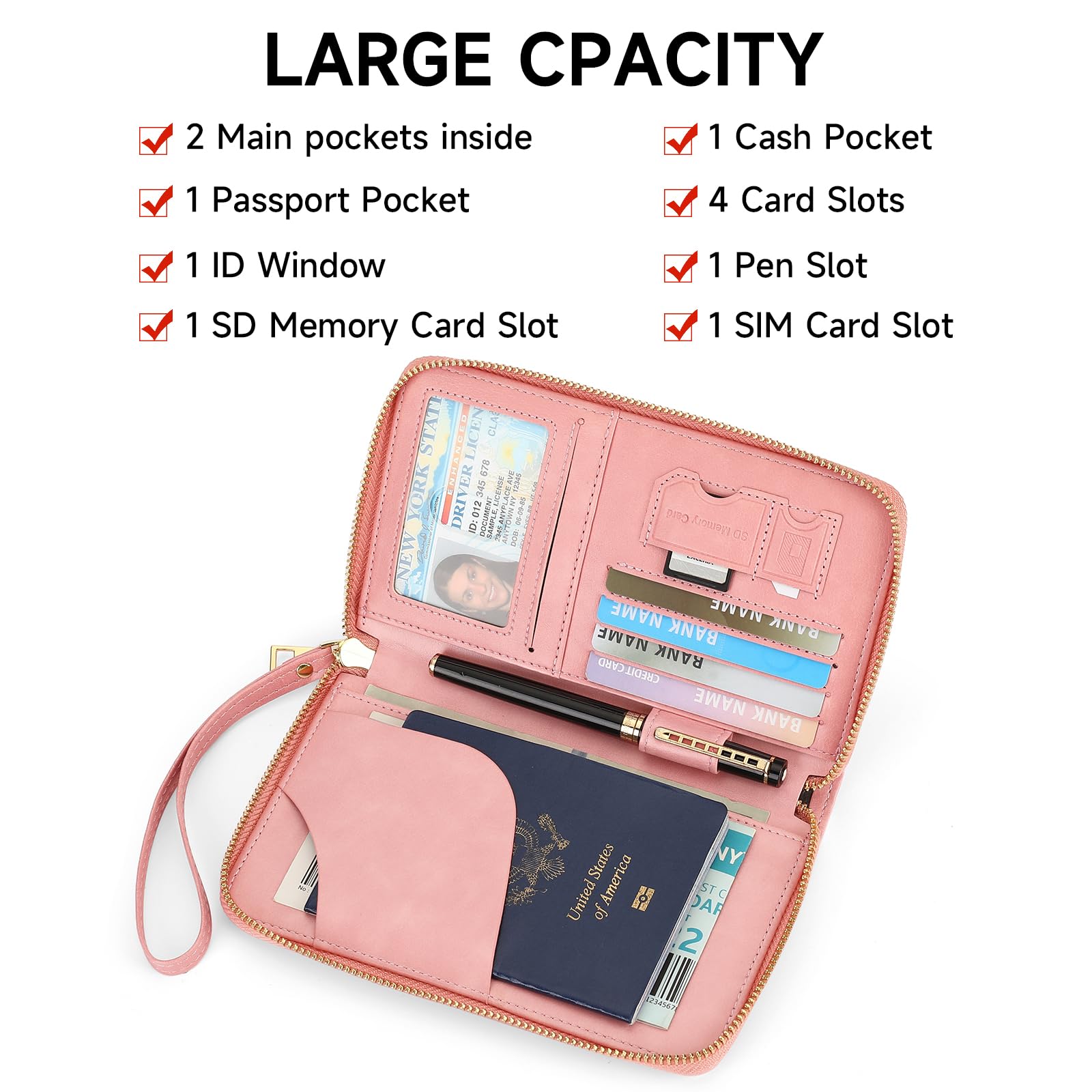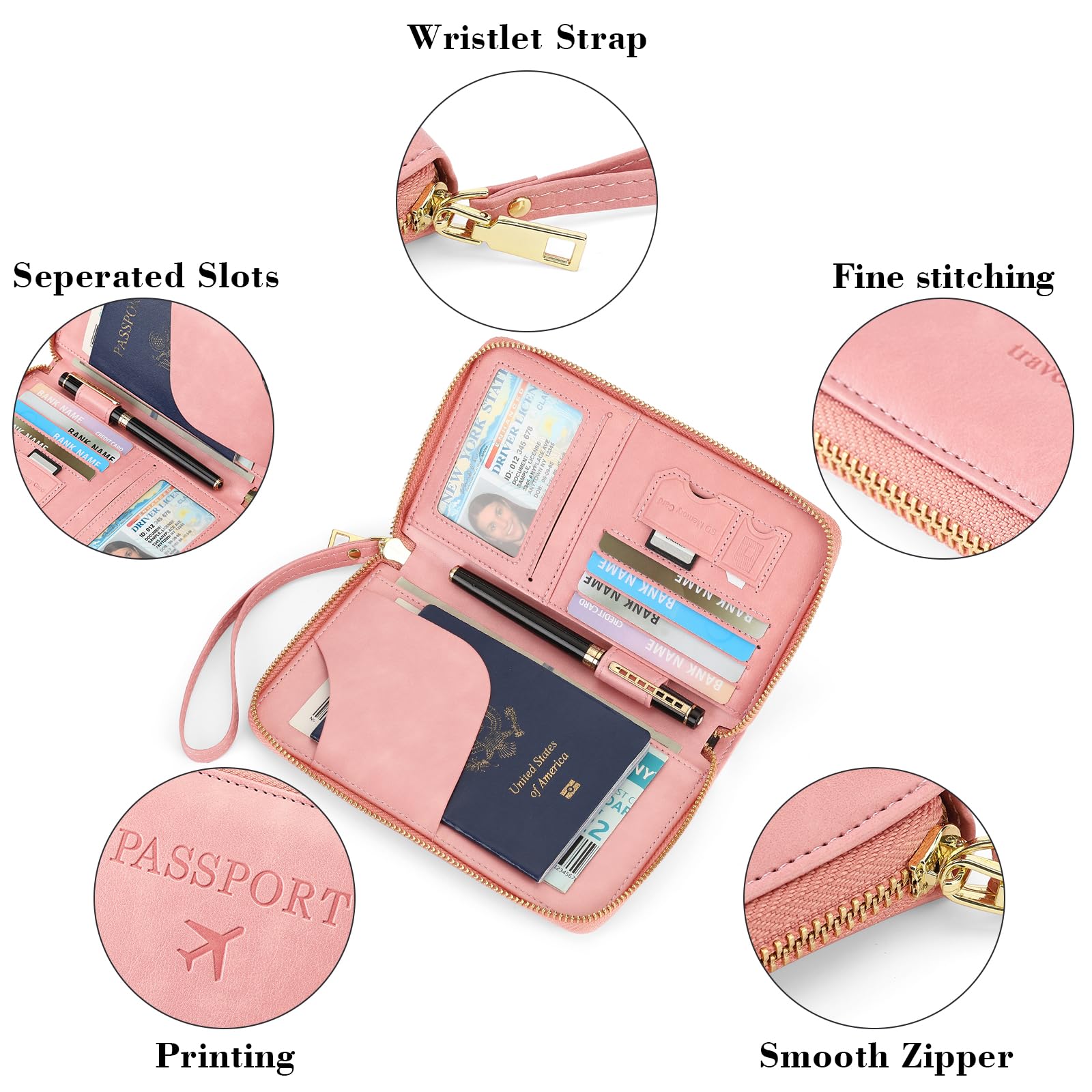 High Quality Material: The clutch passport wallet is made of high quality pu leather,with soft texture and exquisite workmanship. Designed with shiny golden hardware,heavy duty zipper and quanlity fabric Lining