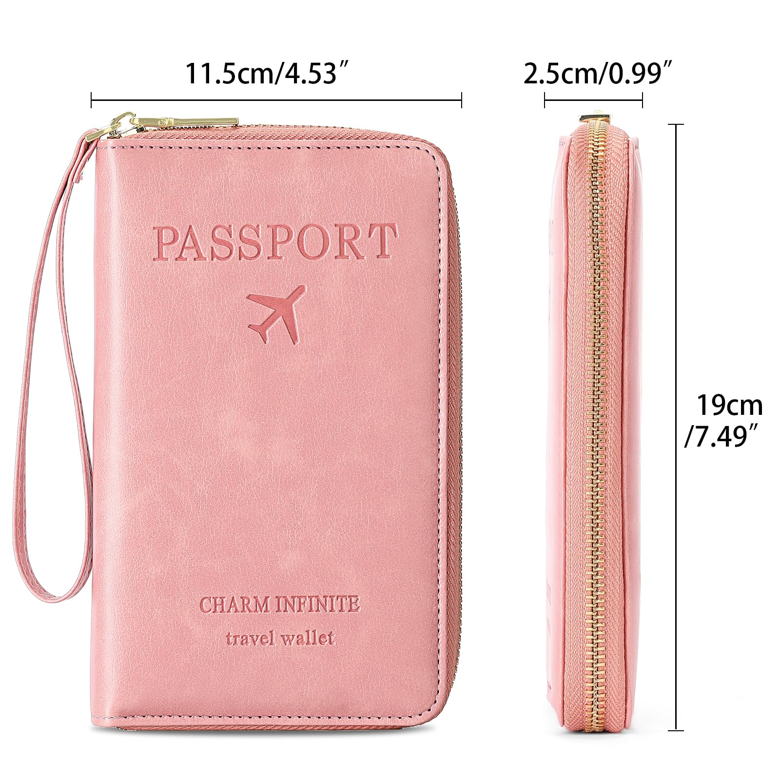 Compact Size: The size of passport holder women men is 7.49"L x 4.53"W x 0.99"H inches. The passport wallets are designed with stringent measurements to make sure they will fit your documents precisely. The rfid passport protector will hold any standard size passport book. The ultra-slim design allows our passport card holder and vax card holder to fit comfortably in your pocket, purse or handbag and is lightweight and easy to carry