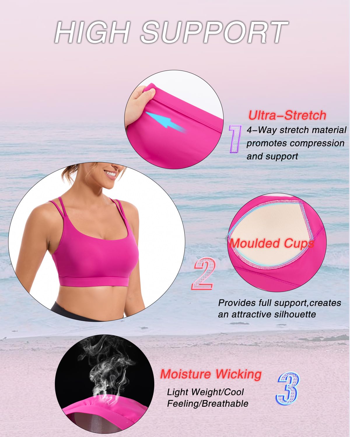✅ 【HIGH IMPACT SPORTS BRA】:Intense workouts call for extra support. RUNNING GIRL Sports Bra is strategically designed to deliver support and tailored for high impact activities like running, jumping and full body workouts. Featuring moulded cups and stretch straps for the perfect fit. Everything will stay in place and you can fully concentrate on aiming high!