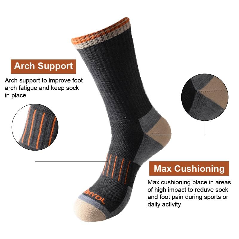 PERFORMANCE: Max Cushioning-Max Cushioning place in areas of high impact to reduce sock and foot pain during sports or daily activity. Deep Heel Pocket-Engineered heel pocket to provide true fit during wear. Arch support-Arch support to improve foot arch fatigue and keep sock in place. Reinforced heel and toe-Reinforcement in heel and toe provide durability in high stress areas to dramatically in improve product life.