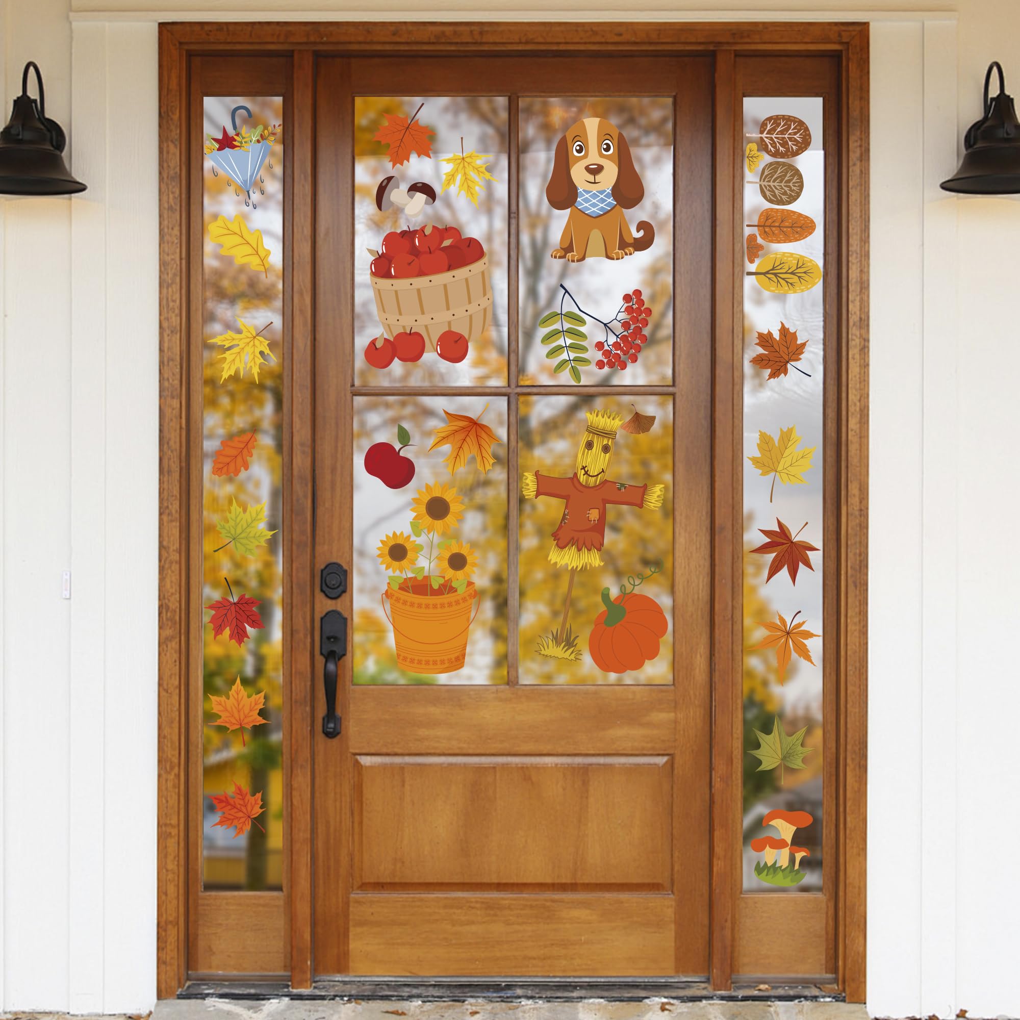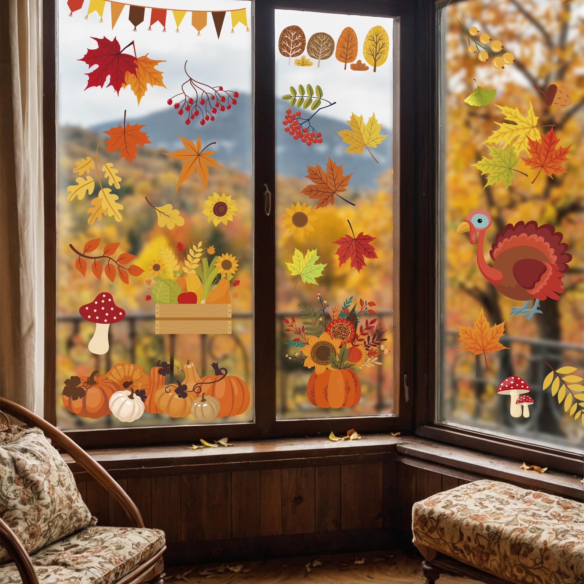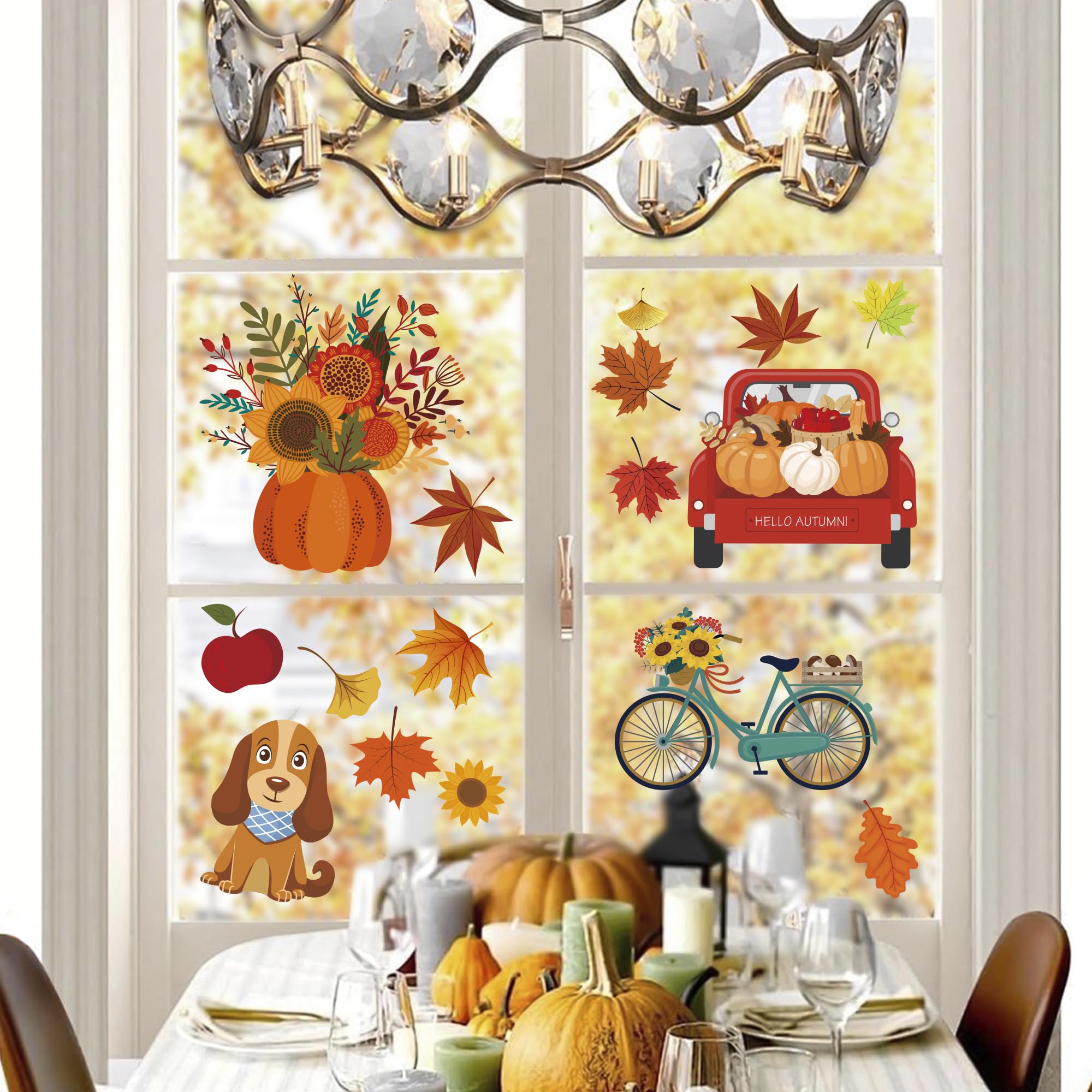 Fall window clings:fall porch decor,fall leaves,fall flowers,fall stickers,outdoor fall decorations for porch,fall home decor,fall party decorations.