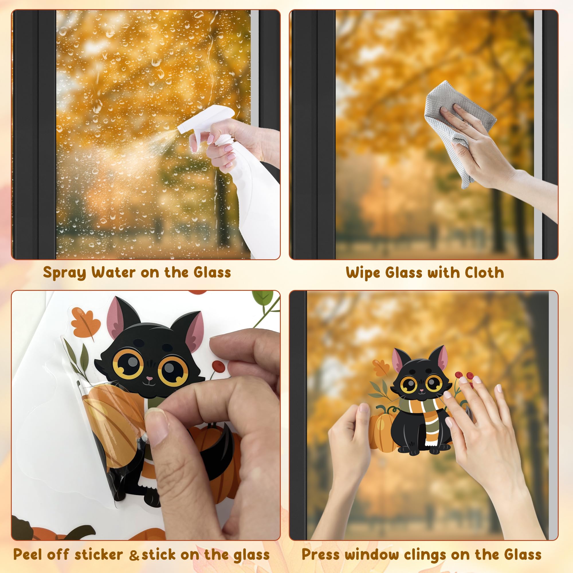 Effortless Application - Prior to use, simply spray a bit of water on the window surface. This helps the fall window clings adhere more securely. They are easy to peel off and can be reused without leaving any residue, ensuring convenience for all your decorating endeavors.