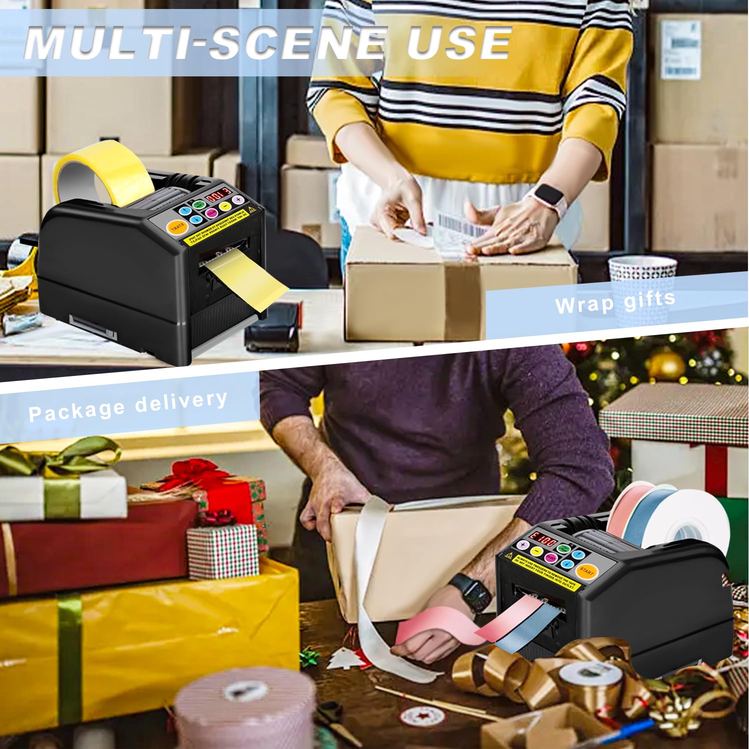[Easy To Operate] Automatic tape dispenser cutting machinewith built-in smart sensor,just load one or two rolls of suitabletape in the Ribbon Cutting machine, select the set length andmode,press the start button to complete the cutting.using thistape dispenser will save you a lot of time and increase efficiency inyour packaging tasks. The automatic tape dispenser is suitable fordifferent places: holiday decoration,warehouse,office, retail storeflorist.cake shop etc.