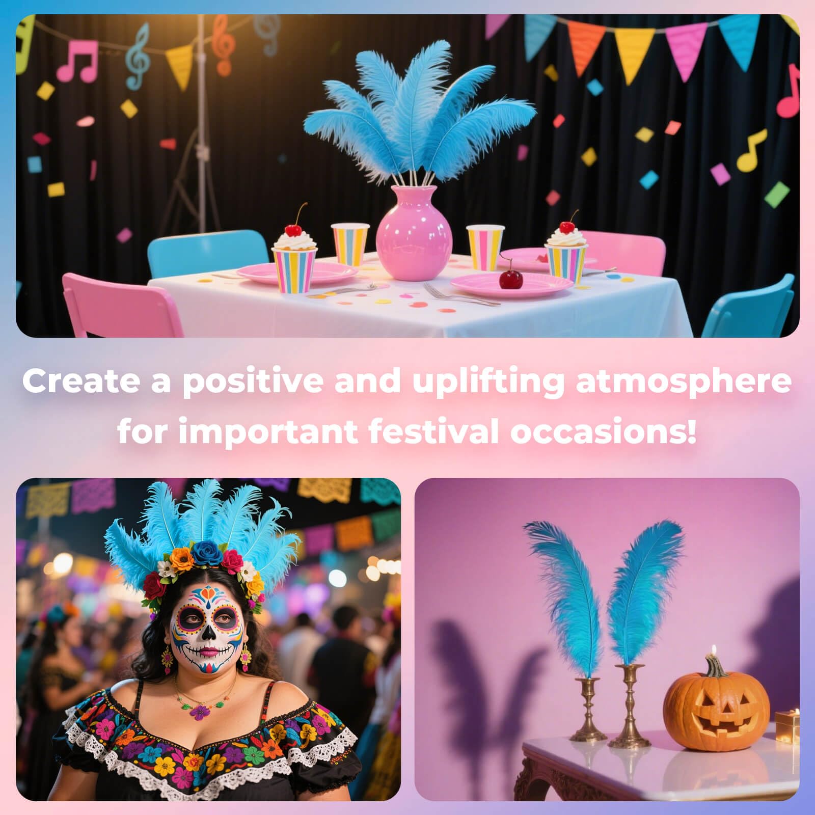 ❤Perdect for Most Occasions: Ostrich feathers are perfect for wedding centerpiece, diy clothes and accessories, dreamcatcher, feather garland, Halloween decoration, cake decor, masquerade decor.