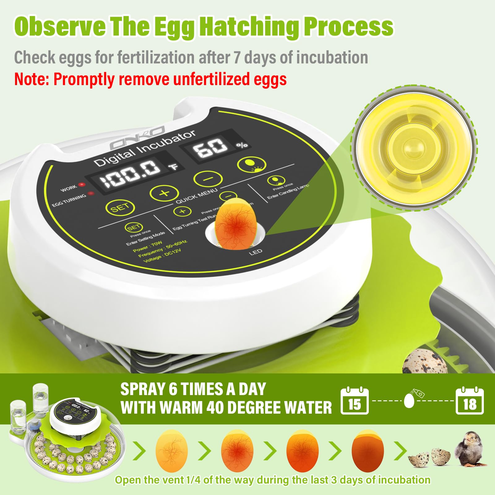 360Β°Transparent View: Our bird egg incubator uses a transparent shell, which allows you to observe the entire incubation process from 360Β° without dead angle, and monitor the development of the quail eggs in real time, making it ideal for life education programs for children to feel the miracle of life