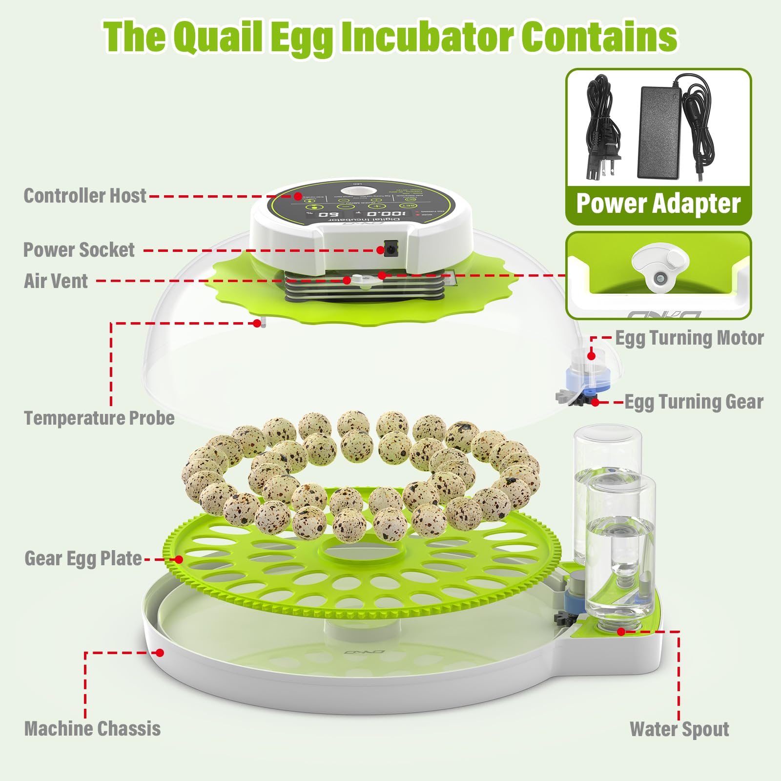 Durable Material and Easy Clean: Our automatic quail egg incubator is made of ABS transparent material, environmentally friendly and durable. The overall design is easy to disassemble, and the base can be washed directly with water for quick and easy cleaning
