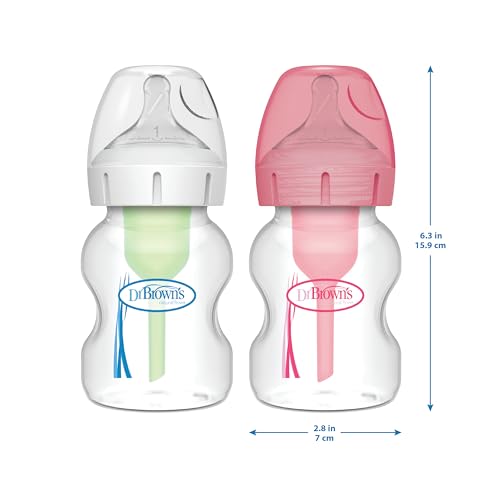 BOTTLE GROWS WITH BABY. Dr. Brown’s Natural Flow Anti-Colic Options+ baby bottle works best with the internal vent system in place but can be removed as baby’s feeding develops – no need to introduce a different bottle.