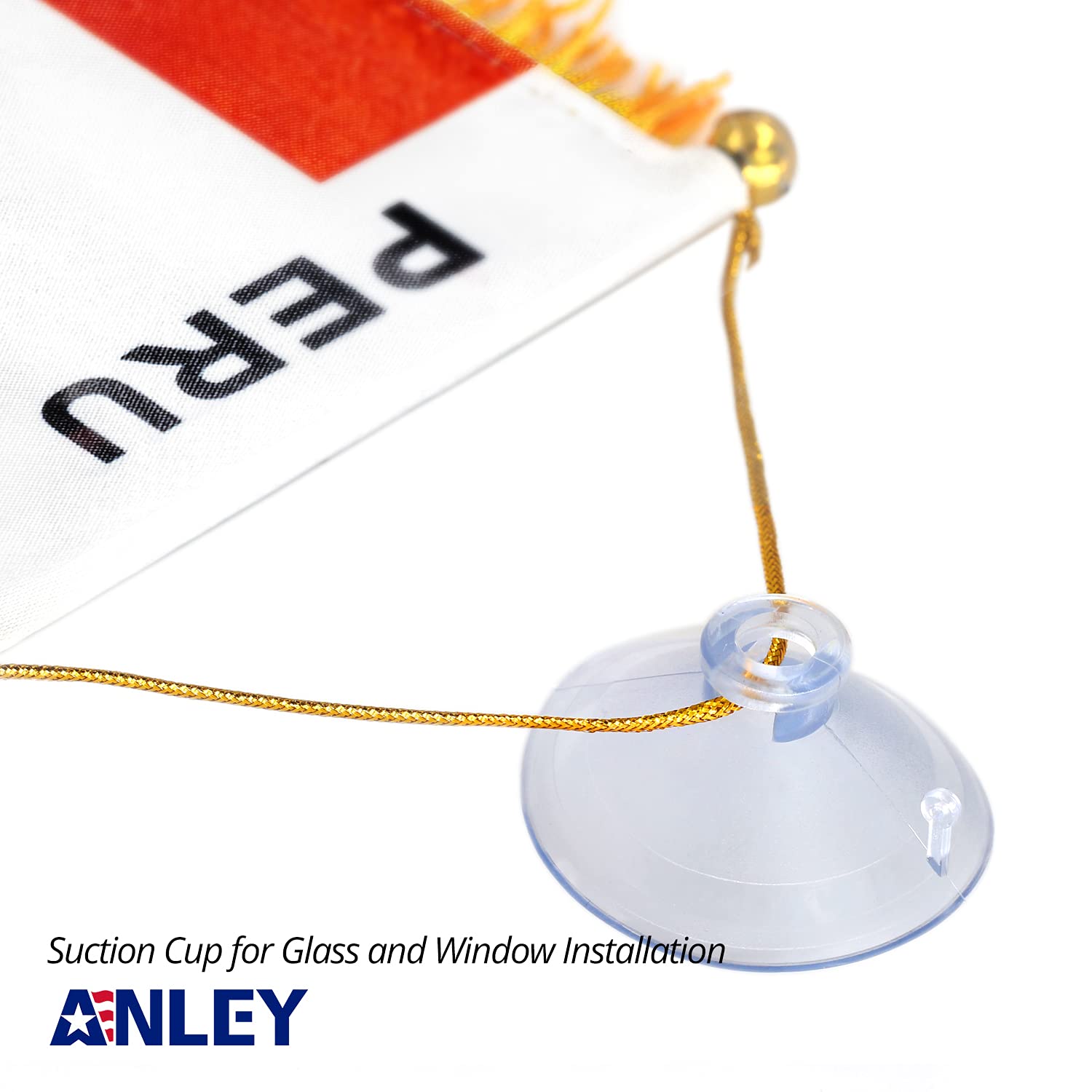 Anley 4 X 6 Inch Small Peru Flag PREMIUM QUALITY Imported. Independently double stitched all around the edge, not easy to fall apart. FADE RESISTANT The color is bright and vivid, evenly-printed on both sides and without a color difference. EASY TO USE Can mount directly over the rear view mirror or with suction hanger. You can also hang it on the window in your home. Light & Compact With a size of 4" x 6", it perfectly matches with any vehicle. The sateen material looks bizarre in the sunshine. WARRANTY We stand behind our products! All items sold by ANLEY come with a 3-MONTH replacement warranty.