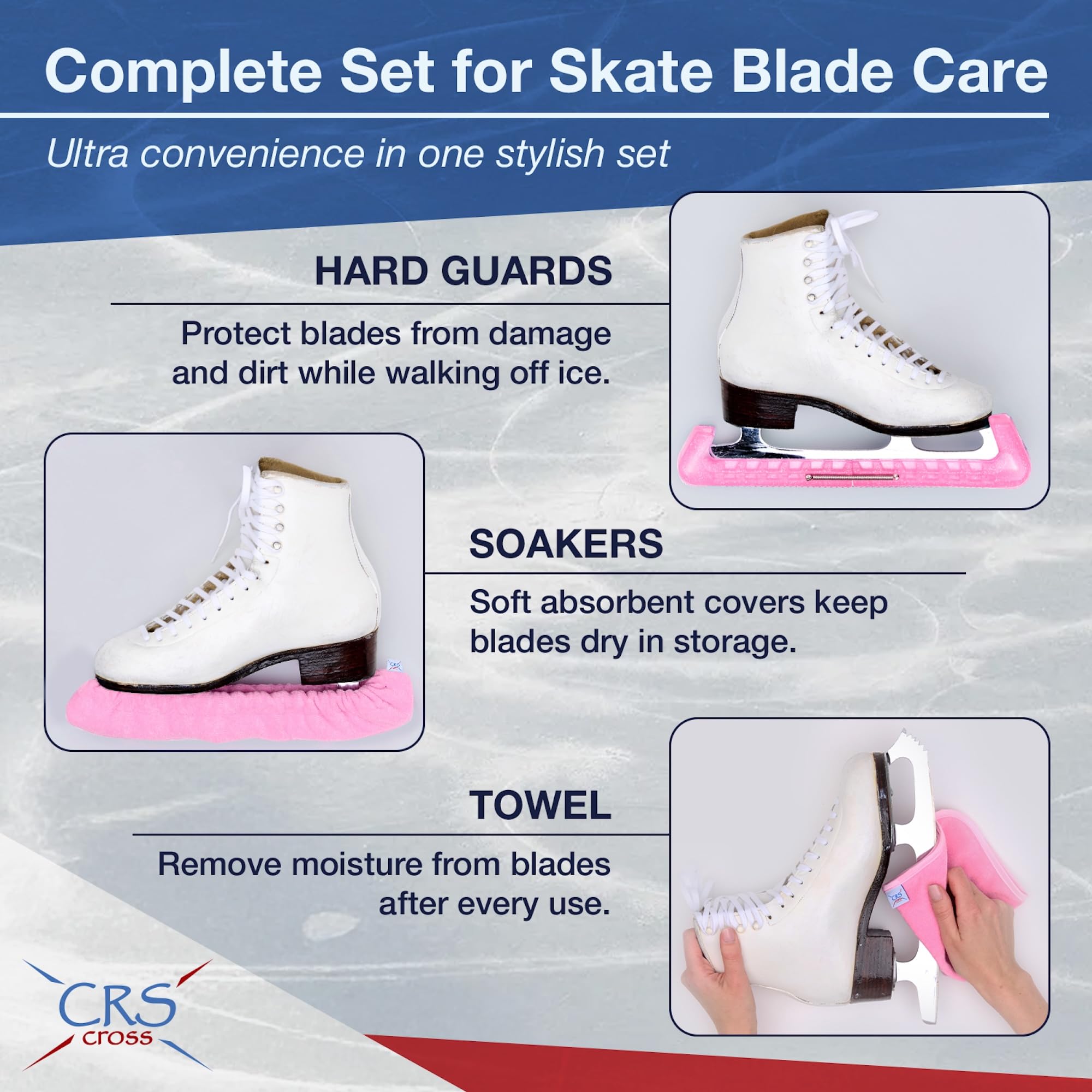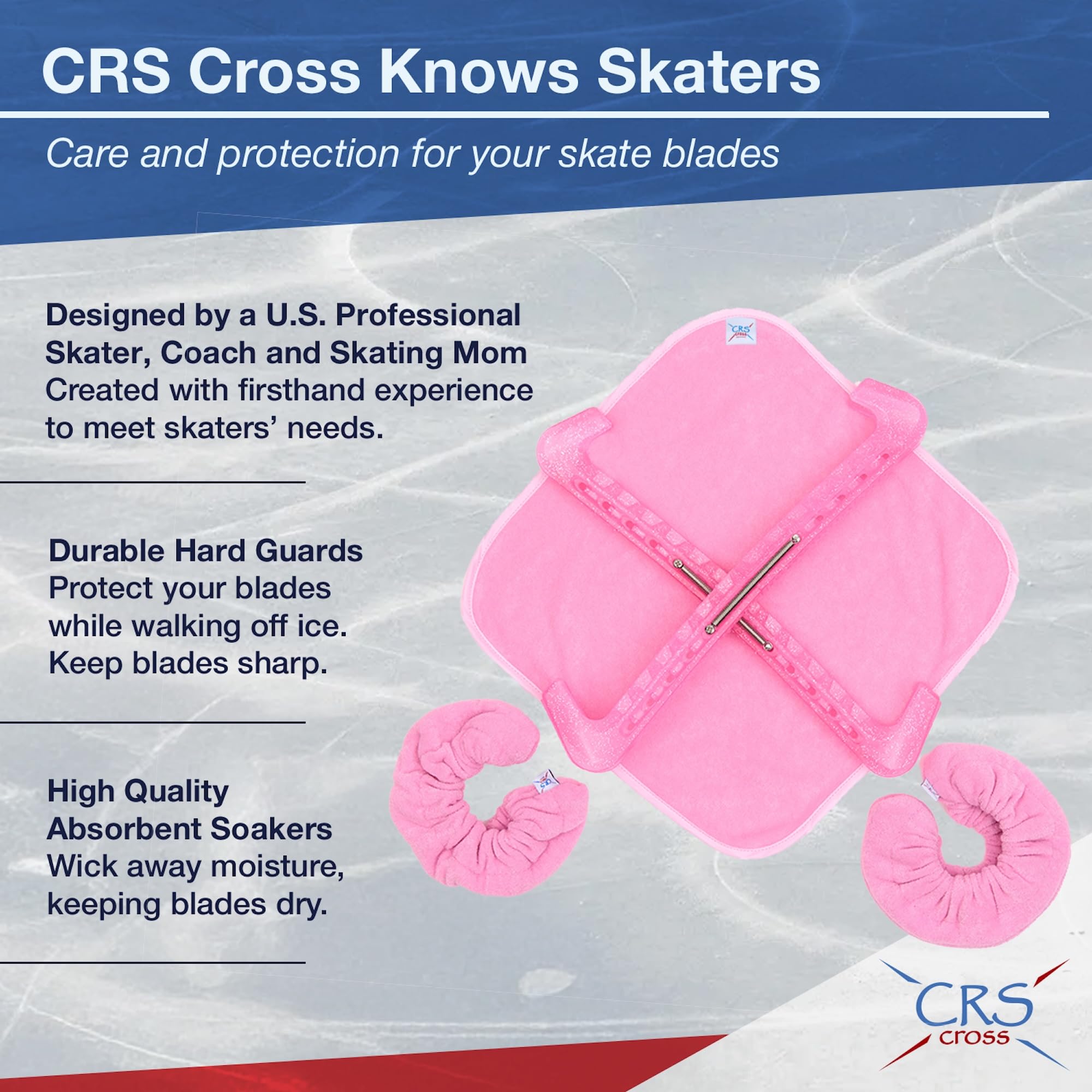 CRS Cross Skate Guards, Soakers and Towel Set and all other CRS Cross products are designed by a former professional skater, coach and skating mom