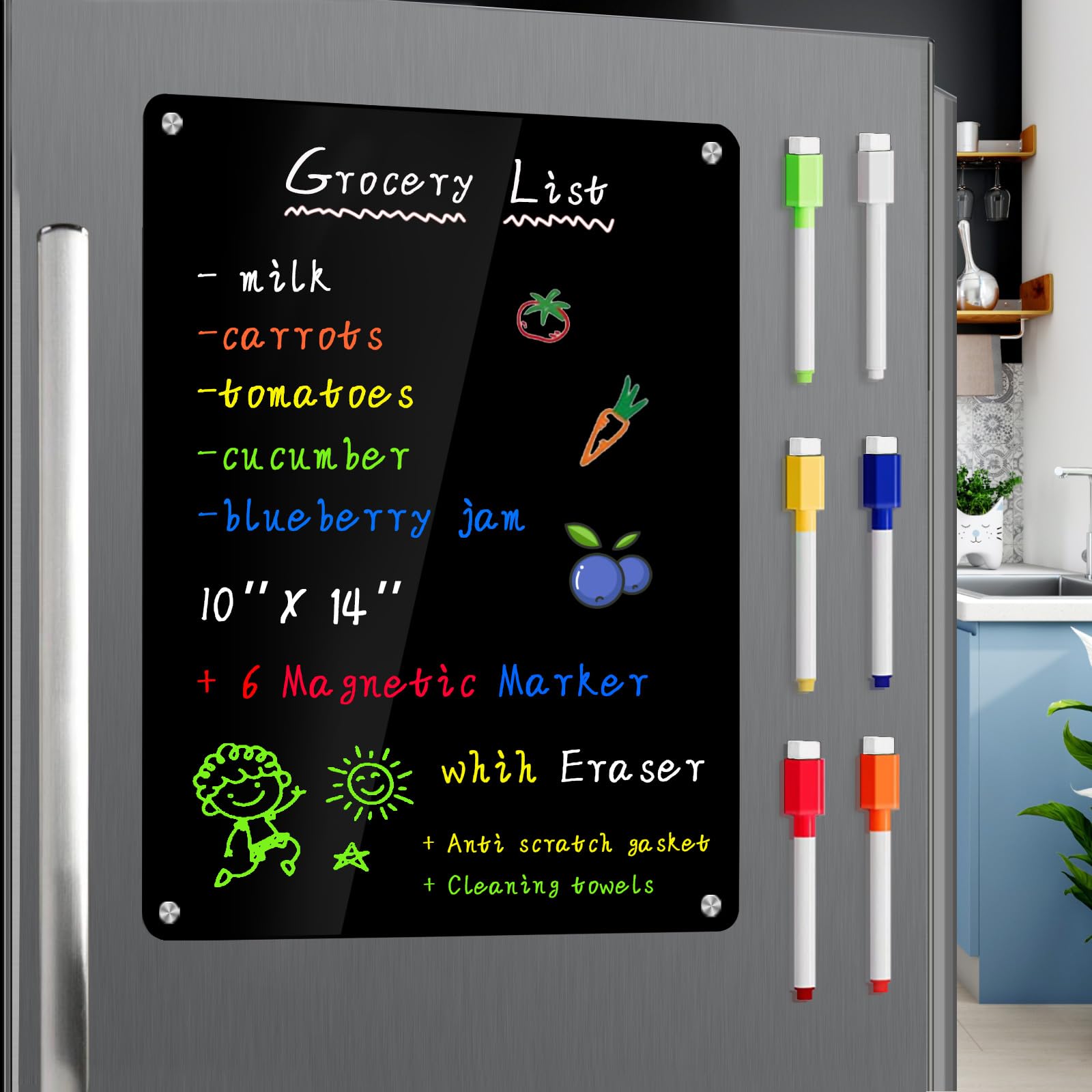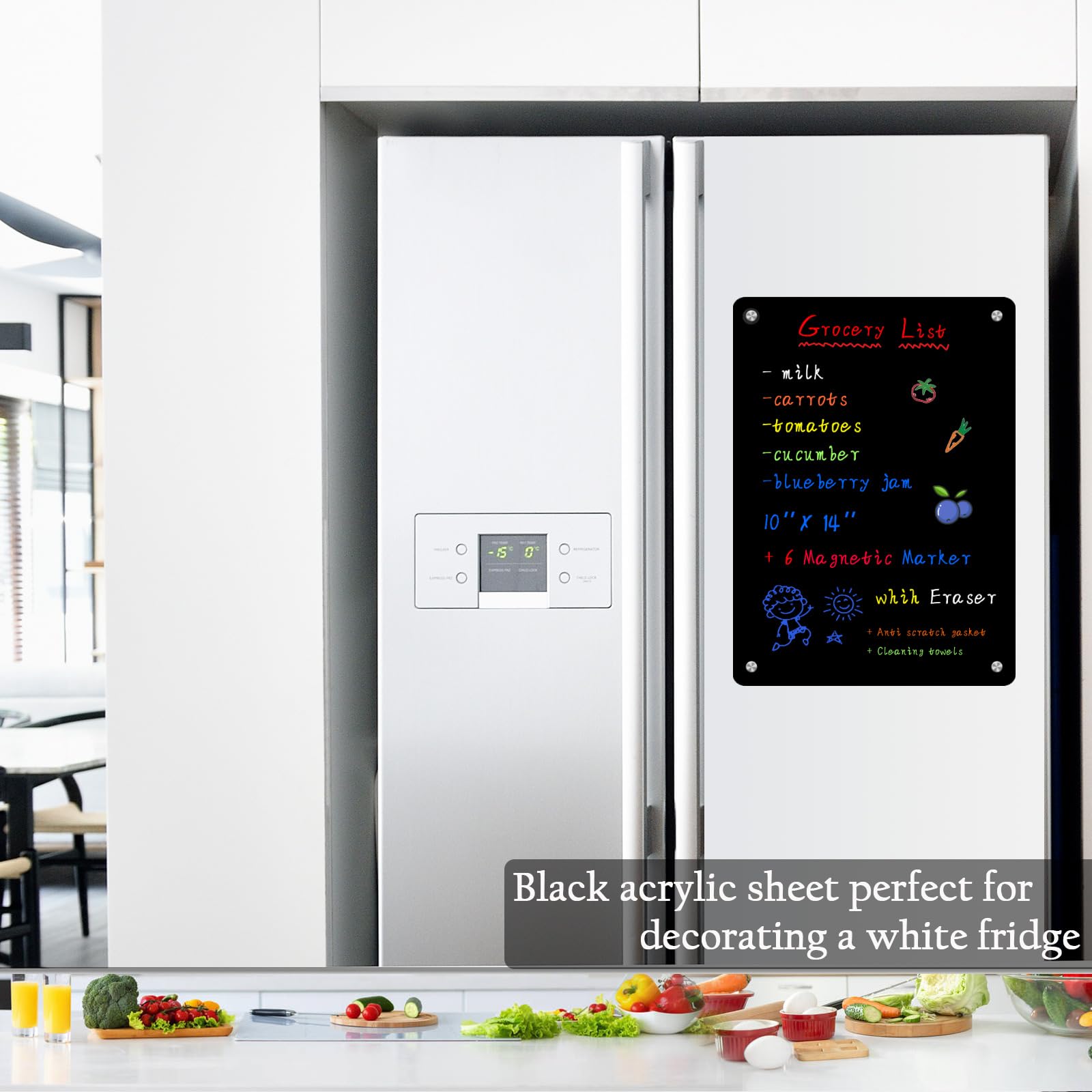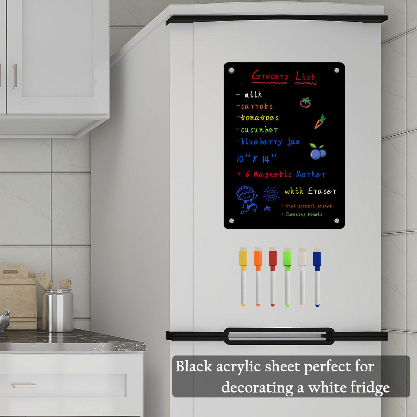 Jonxon Acrylic Magnetic Dry Erase Board for Refrigerator,Acrylic Board for Fridge,To Do List for Fridge,Clear Board for Fridge,Includes 6 Colors Markers(10" X 14” Black Blank)