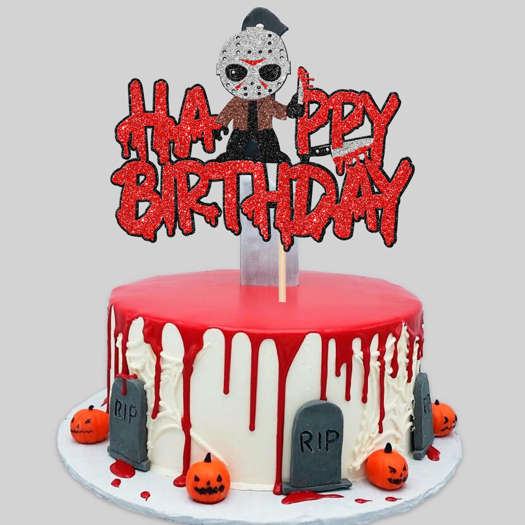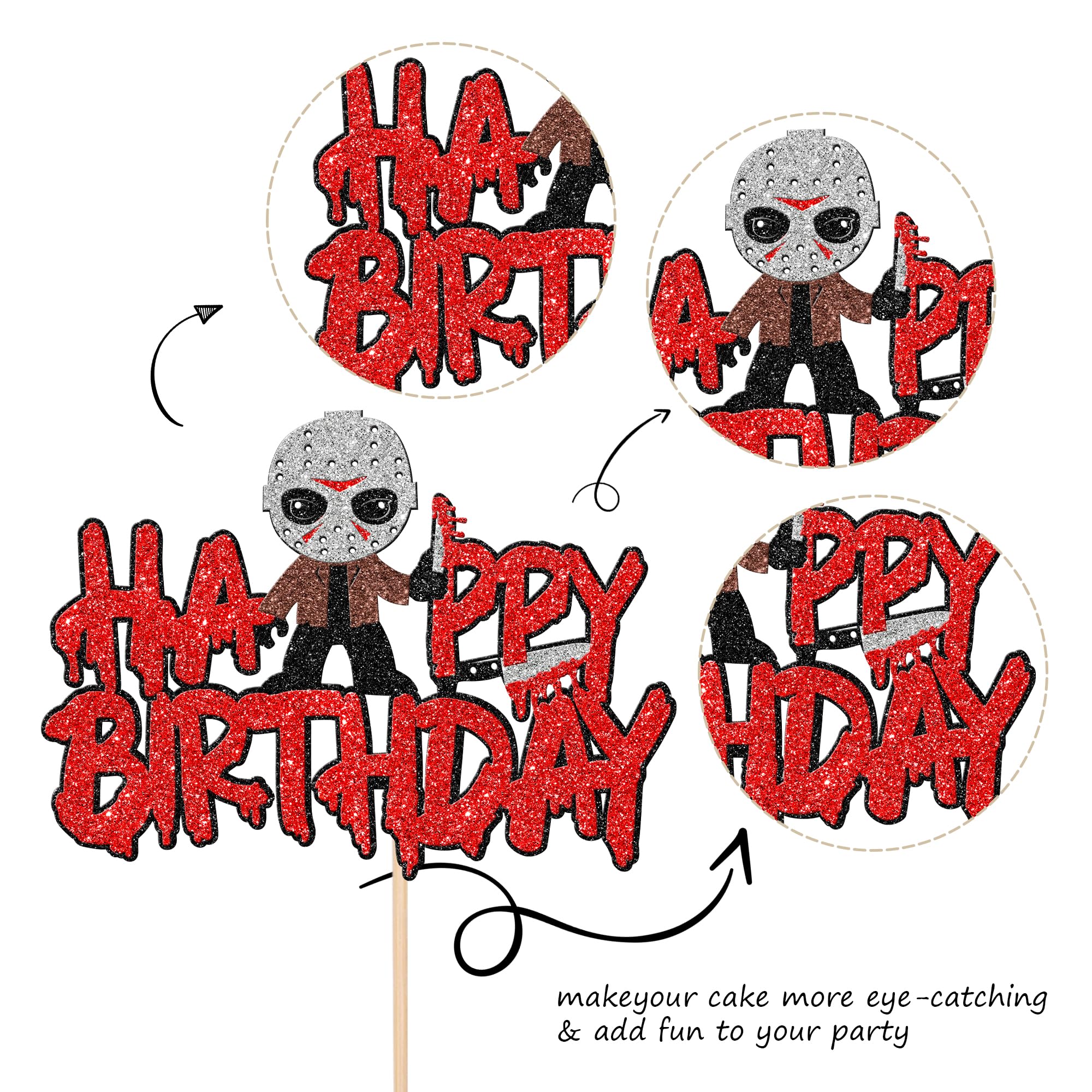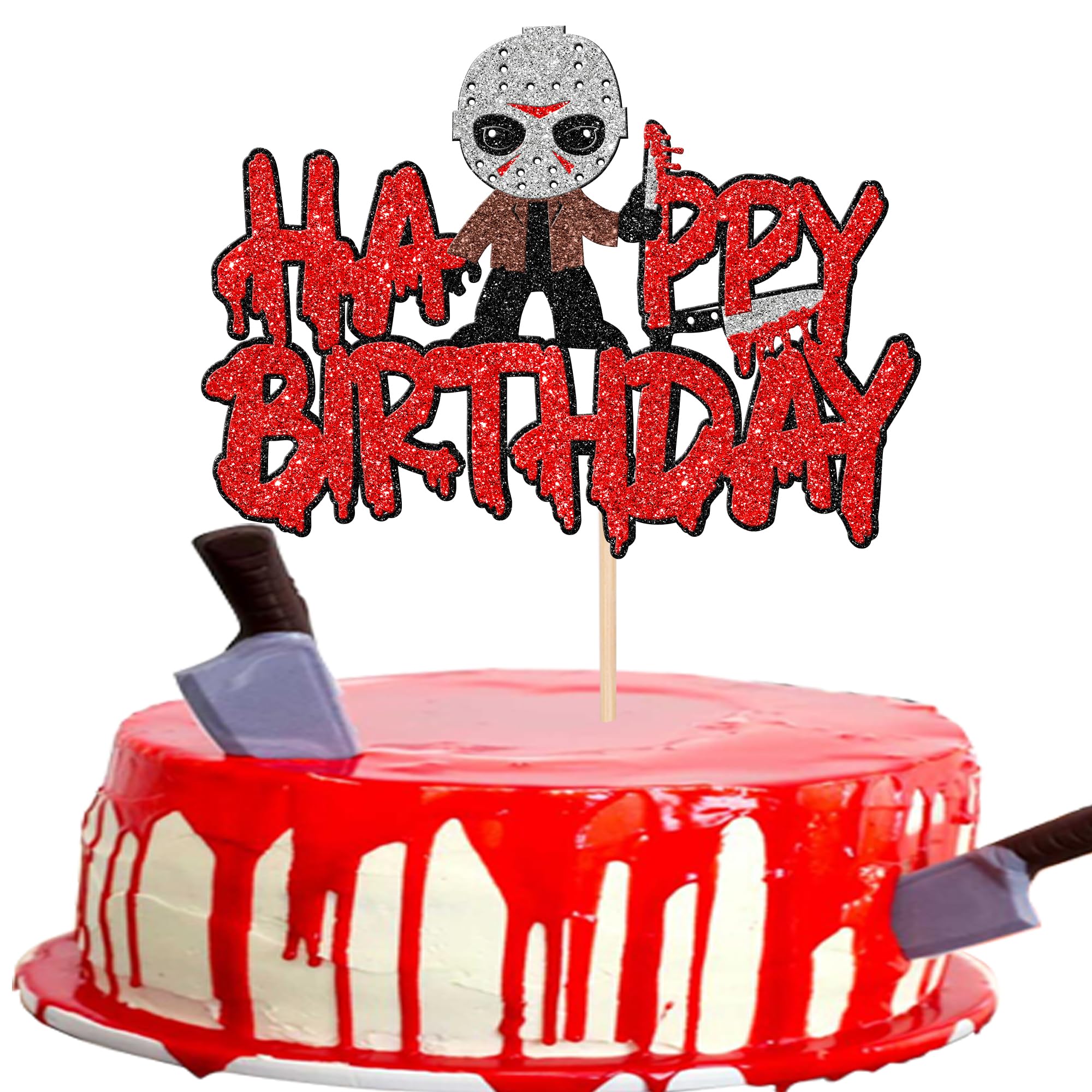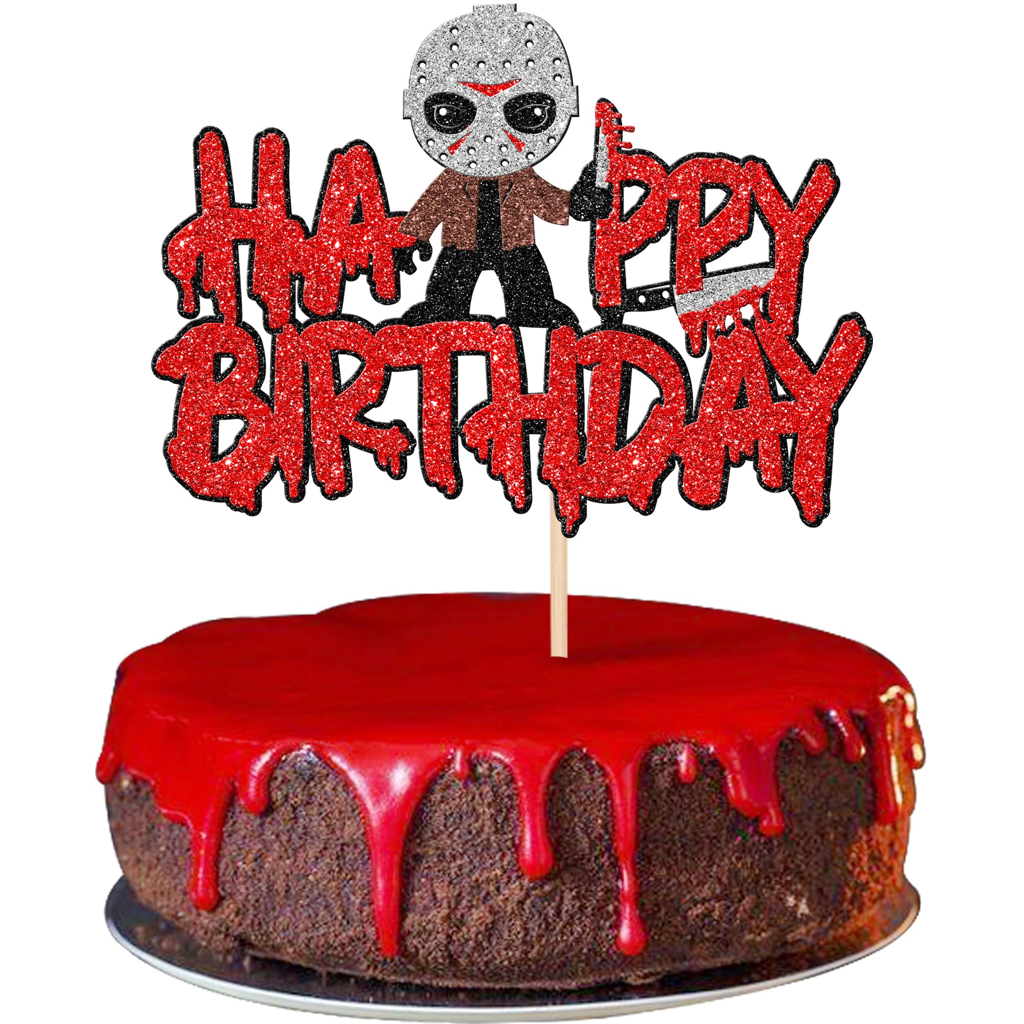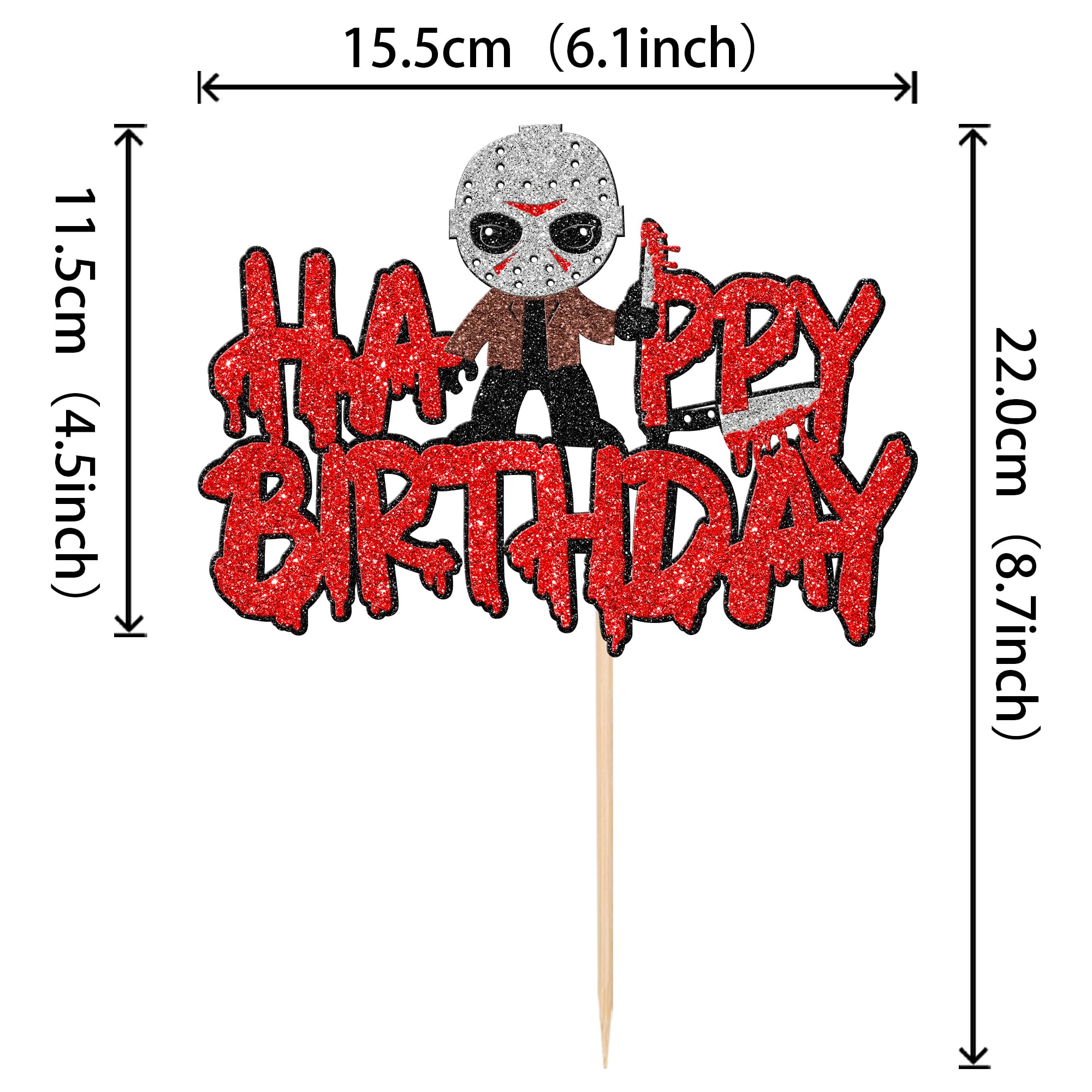 Horror Classic Movie Have a Killer Themed Happy Birthday Cake Topper for Horror Movie Halloween Theme Kids Woman Man Birthday Party Cake Decorations Supplies perfect for horror calssic movie theme birthday party, have a killer themed birthday theme party, halloween theme party cake decorations supplies. Pack of 1 pcs. The size is W 6.1 inch * H 8.7 inch / W 15.5 cm * H 22 cm ( with stick ) Made of high quality paper card stock and food grade sticks,thick and sturdy. This cake topper is one side glitter, another side is white, and this is intended for decoration only, please do not put them in oven or microwave. If the item you received has any defects, please contact us for refund.we will deal with it within 24 hours.