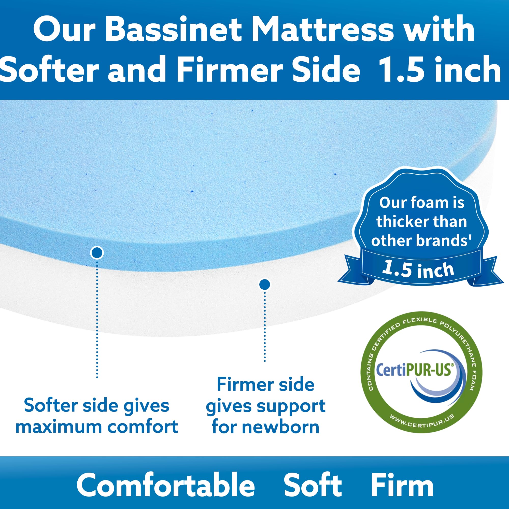 [2-Layer Design] The foam consists of 2 layers that one layer is made of 0.5 inch softer memory foam and the other layer is made of 1 inch high density foam, which provides 2 different degrees of softness side. There's always one side that’s right for baby