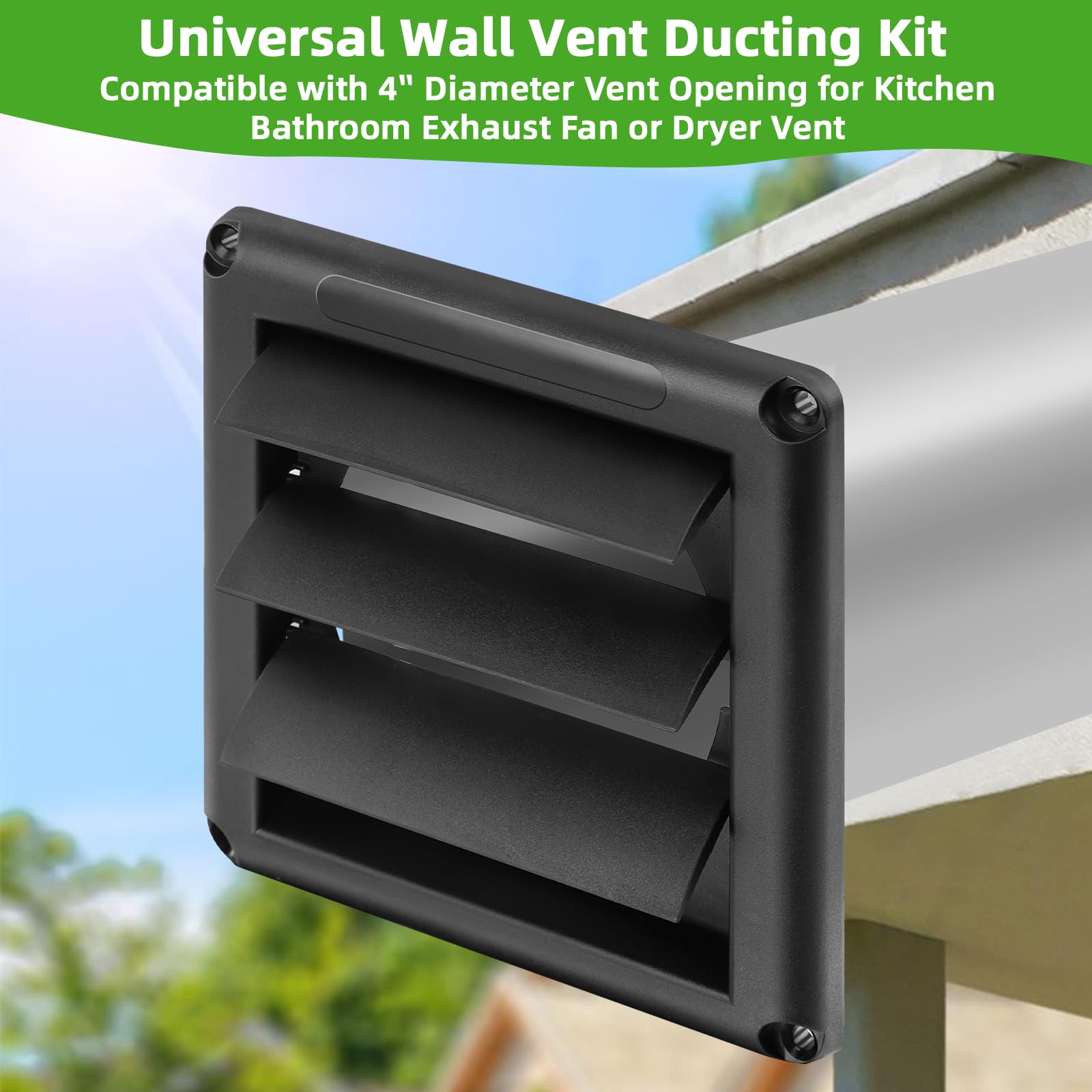 Universal 4 inch dryer vent kit: The 4" Flexible Dryer Vent Wall Ducting Kit compatible with Broan-Nutone Ventilation Fan, and other universal 4” diameter vent opening, easy installation with 3" to 4" foam adapter. Louvered dryer vent cover outside with ease for maximum exhaust flow to exhaust hot air from the clothes dryer vent and bathroom fan venting. PLS measure duct diameter to ensure the size is right before purchasing.