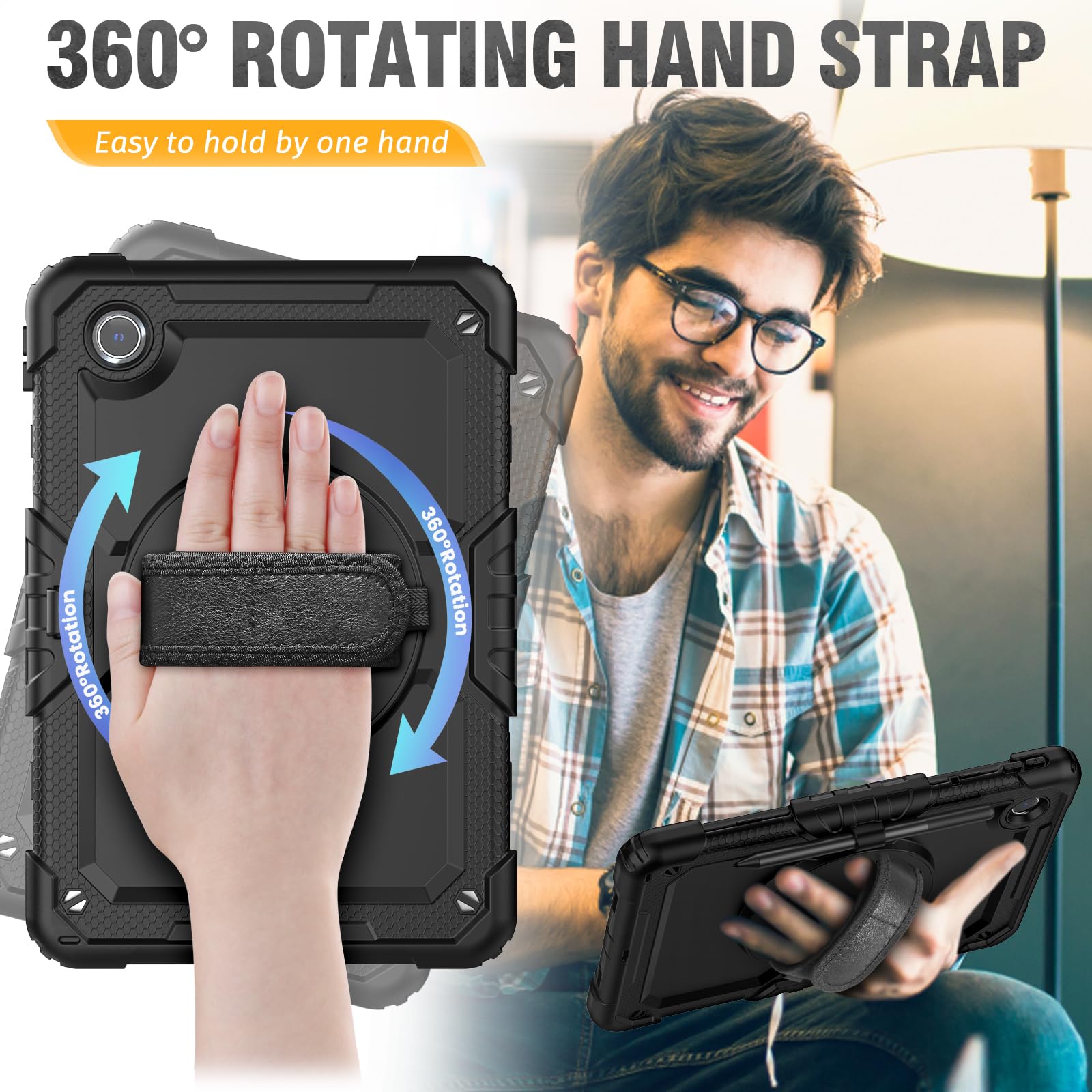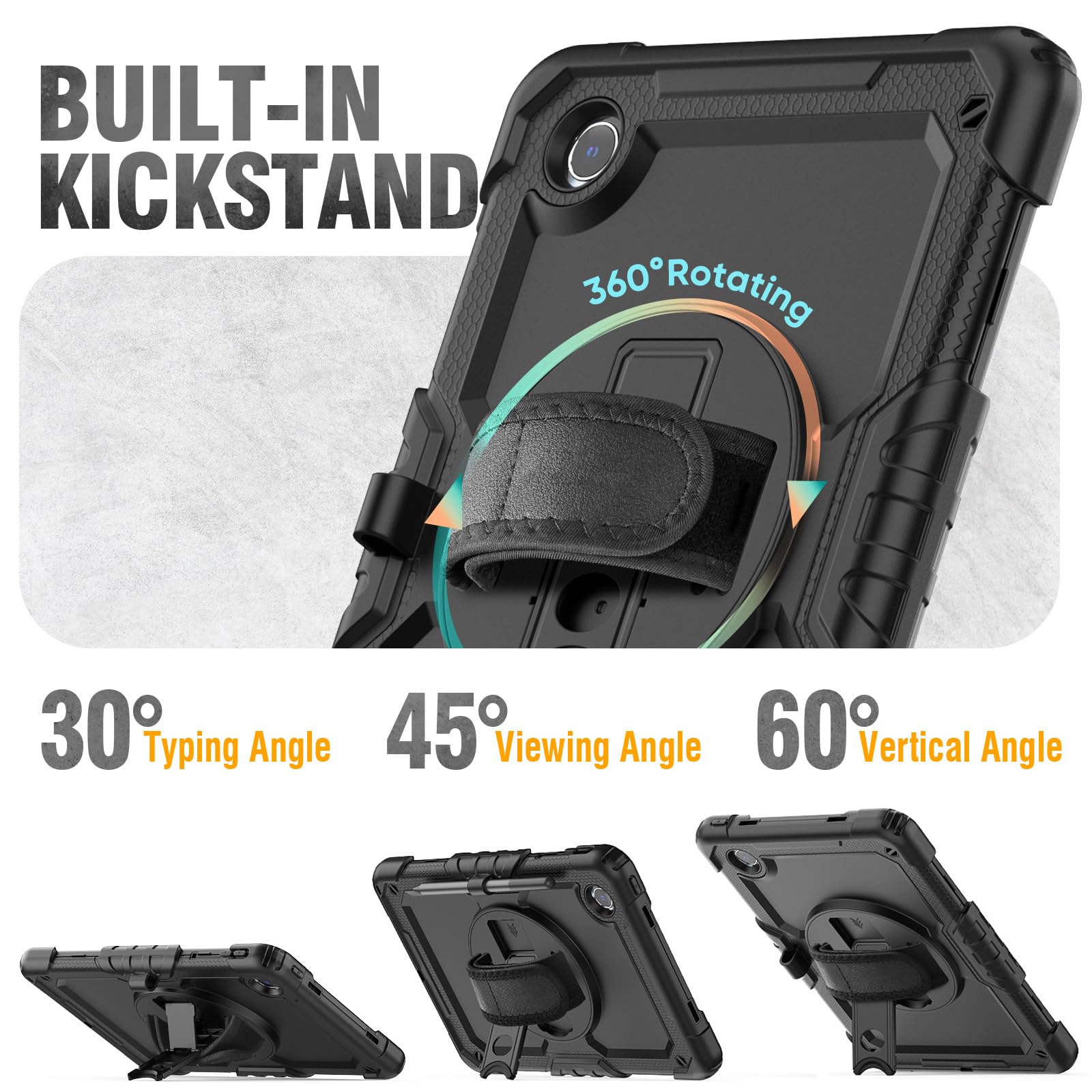 360 Rotating Hand Strap & Stand — With adjustable rotating hand strap and stand, you can hold the s6 lite tablet case by one hand and find the most comfortable viewing angle you need. The built-in stand provides a stable supports, with viewing/drawing/typing angles you need, and it can be folded up when not in use.