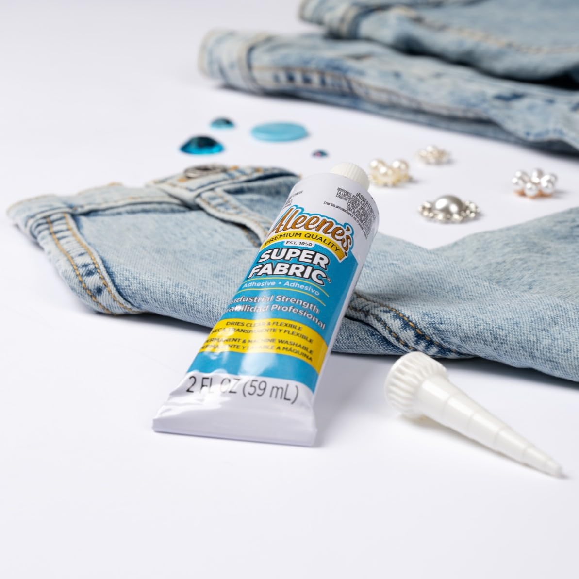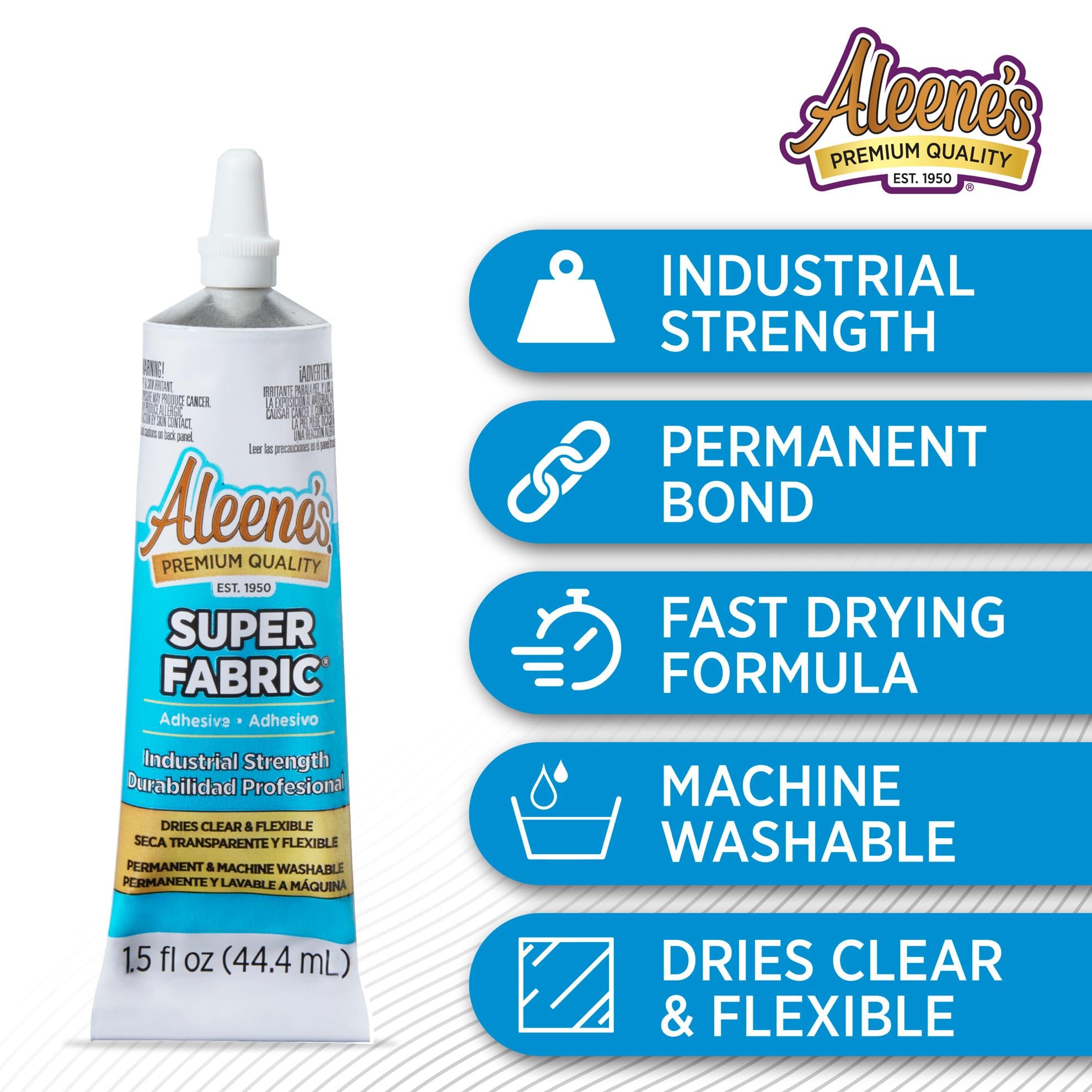 Founded in Los Angeles, California, Aleene’s has been the glue of choice for crafters for over 75 years! From that first bottle of Aleene’s Original Tacky Glue to today’s variety of 60+ unique adhesive options, every Aleene’s product is formulated to deliver premium quality and performance— that’s why we’re voted America’s Favorite Crafting Glue! Aleene’s Super Fabric Adhesive is an industrial-strength glue that works fast and stays ultra-flexible! Permanently glue fabrics and heavy-duty embellishments with a machine-washable bond that dries quickly, stays clear, and won’t yellow. Ideal for felt, leather, canvas, denim, and more. Features 3 (1.5 fl. oz.) tubes of Super Fabric Adhesive.