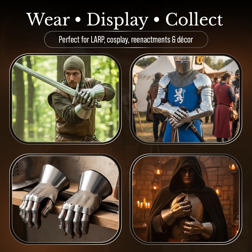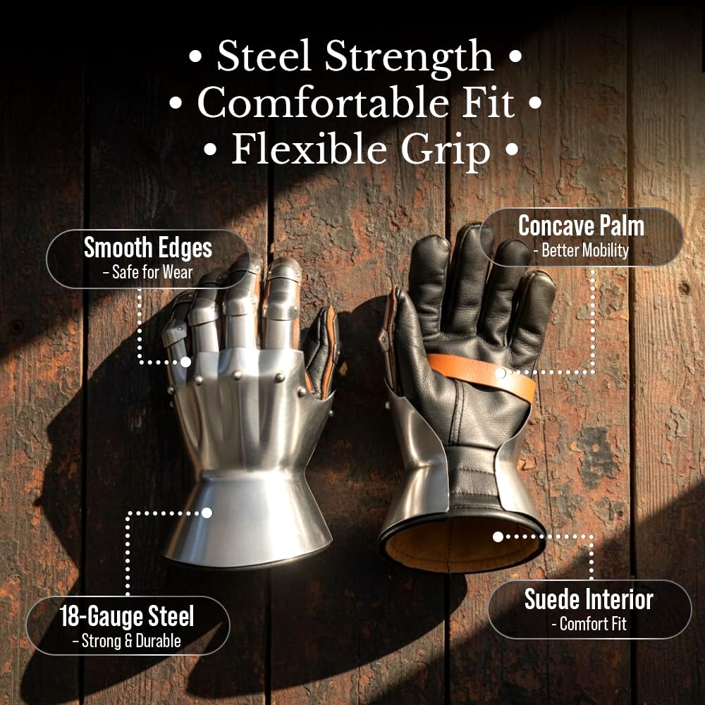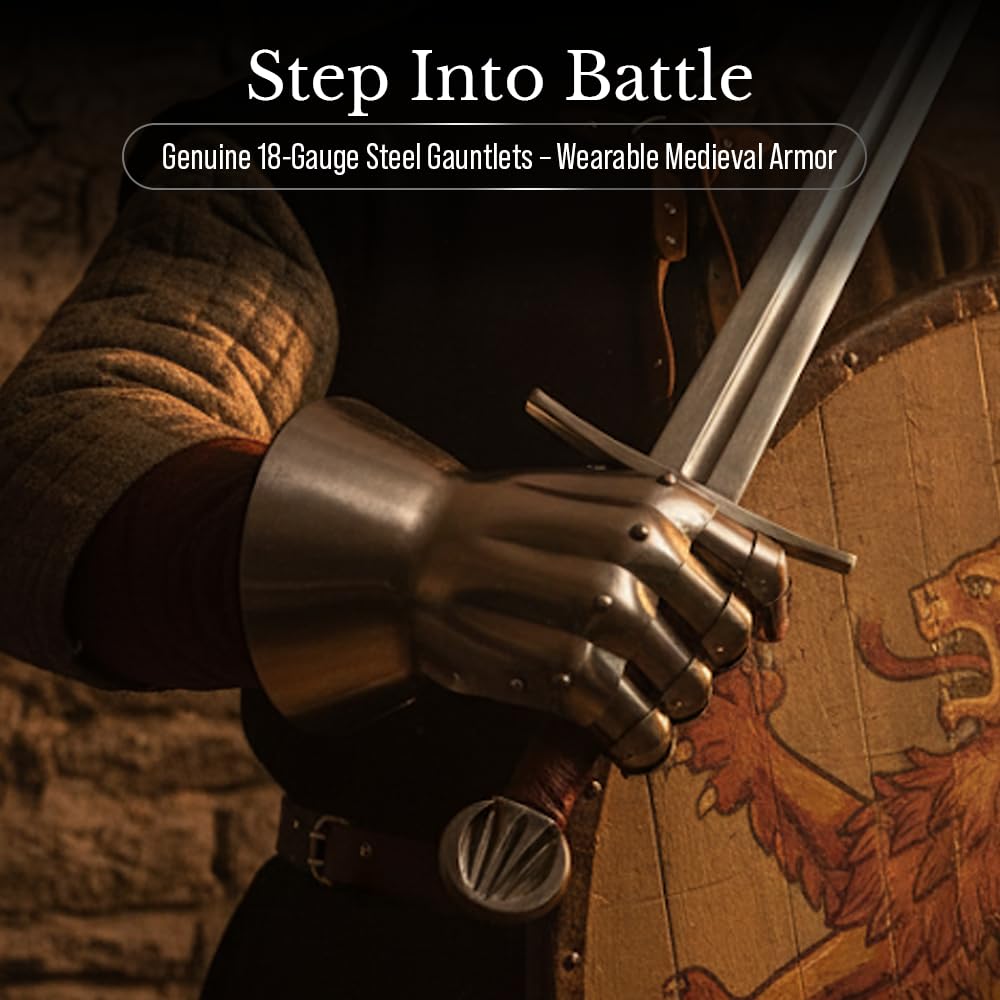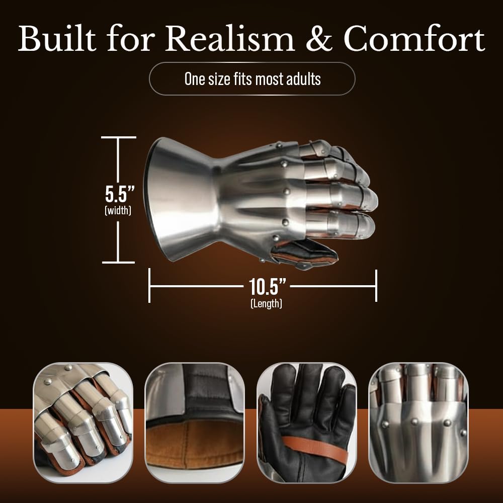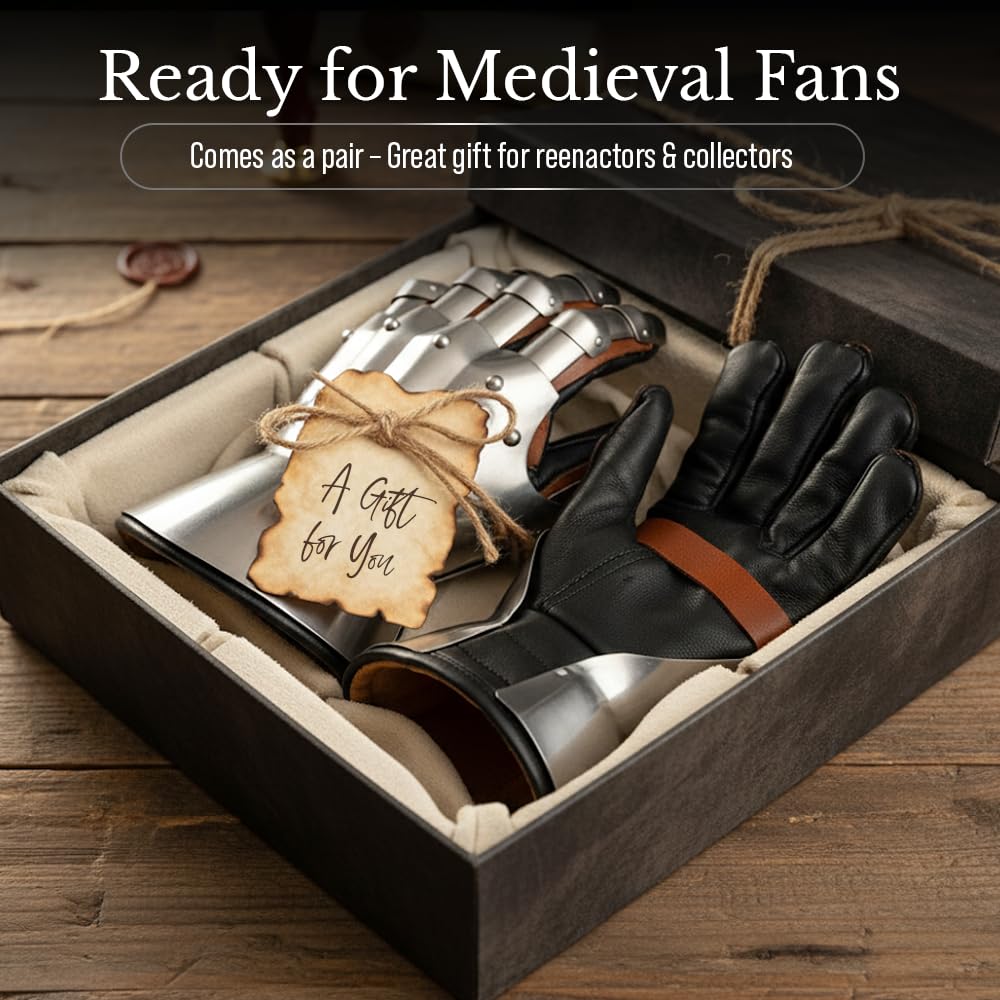 Unique Gift For Medieval Collectibles: These Metallic Handmade Battle Ready Gauntlets Armor Replica is Fully Functional and provides great comfort. Perfect for Reenactment Clubs and Societies. Our Gauntlets collection are a good gifting option on the occasion of Birthday, Anniversary, Special Event like Christmas Halloween or Can be used for Home or Office Decoration as an piece of Art Collection. It can also be used to teaming up with Role Play Costumes.