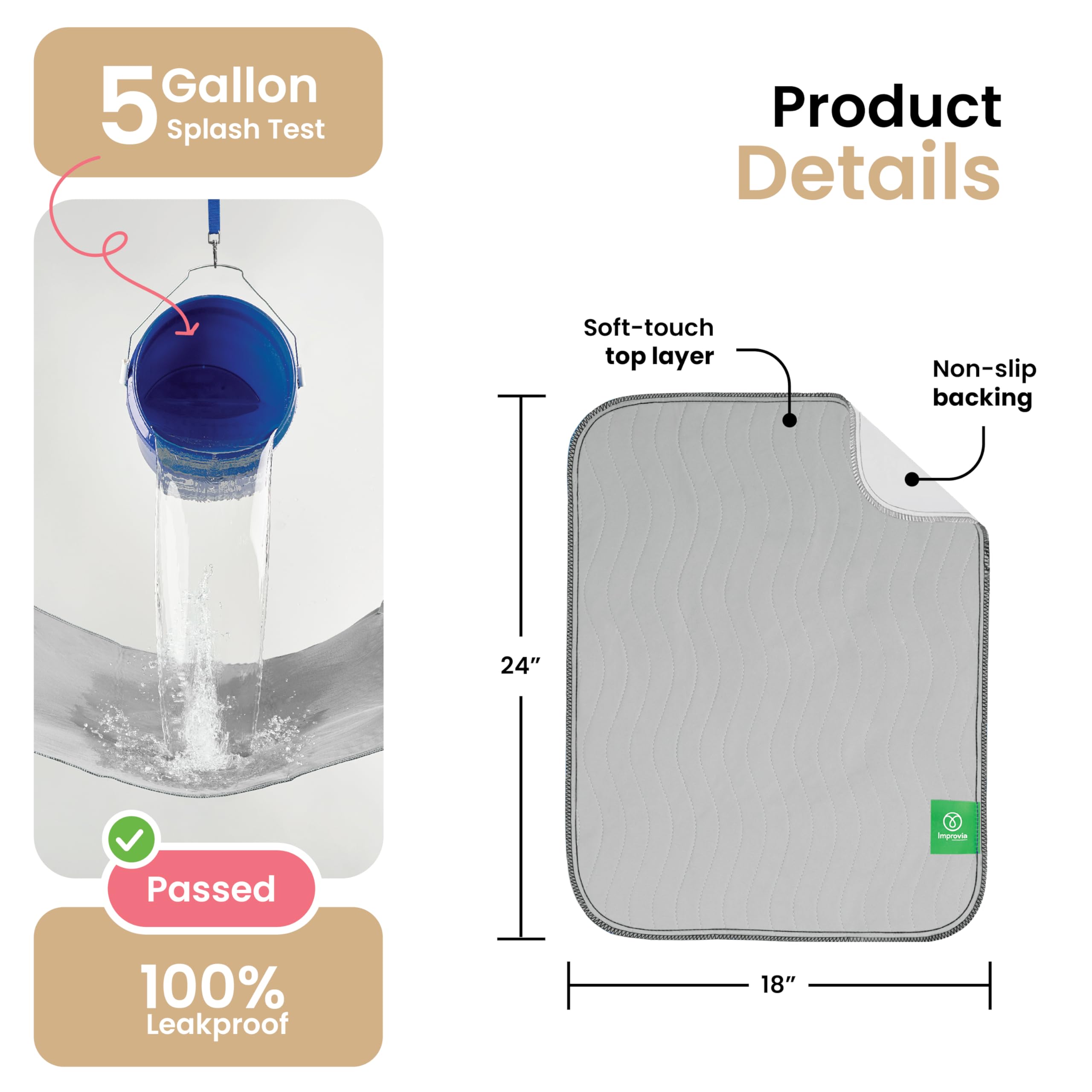 SELF-DRYING TECHNOLOGY - Our premium material selection (Facing: 100% Polyester Fabric | Green Soaker: 65% Polyester / 35% Rayon) and professional construction allows our Bed Protector Pad to dry on its own. It quickly dries in about 10 minutes – even when in use.