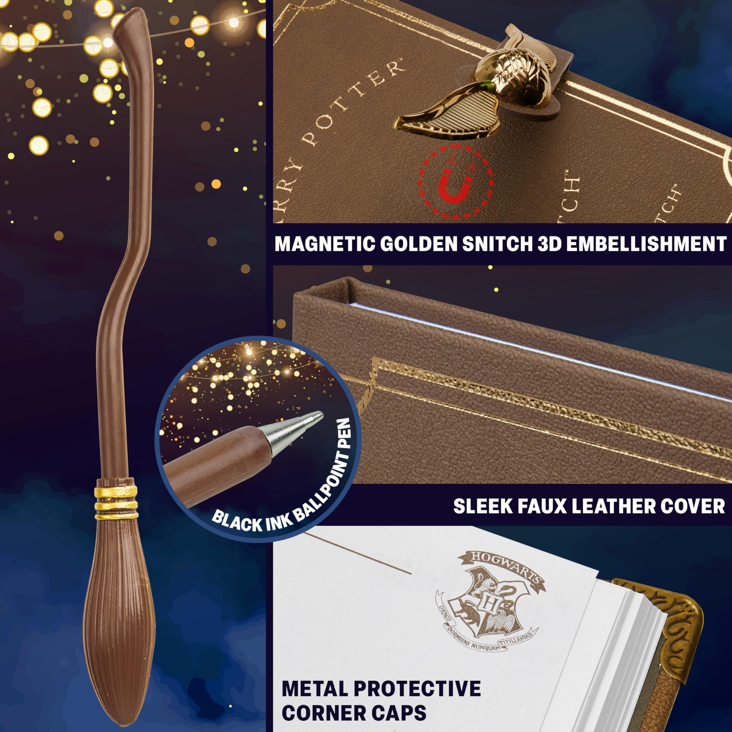 Two Magical Stationery Options: This Harry Potter A5 notebook gift set includes either a faux leather hardback journal with a broomstick pen or a lockable diary with a UV invisible ink pen