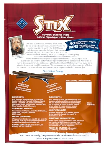 PEPPERONI-STYLE DOG TREATS: For dogs that love a meaty treat BLUE Stix are tender, meaty rolls of pure canine bliss! Break them up into smaller pieces for training treats or smaller dogs, or feed them whole and watch those tails wag.