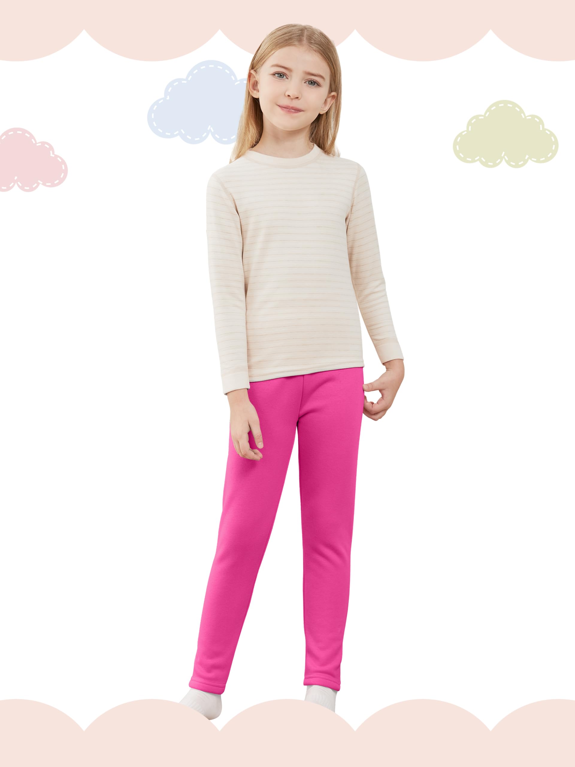 FLEECE LINED LEGGINGS: The outer layer of these warm leggings for girls is made of pure cotton and they are lined with fleece, making them elastic, soft, comfortable, and with excellent warmth.