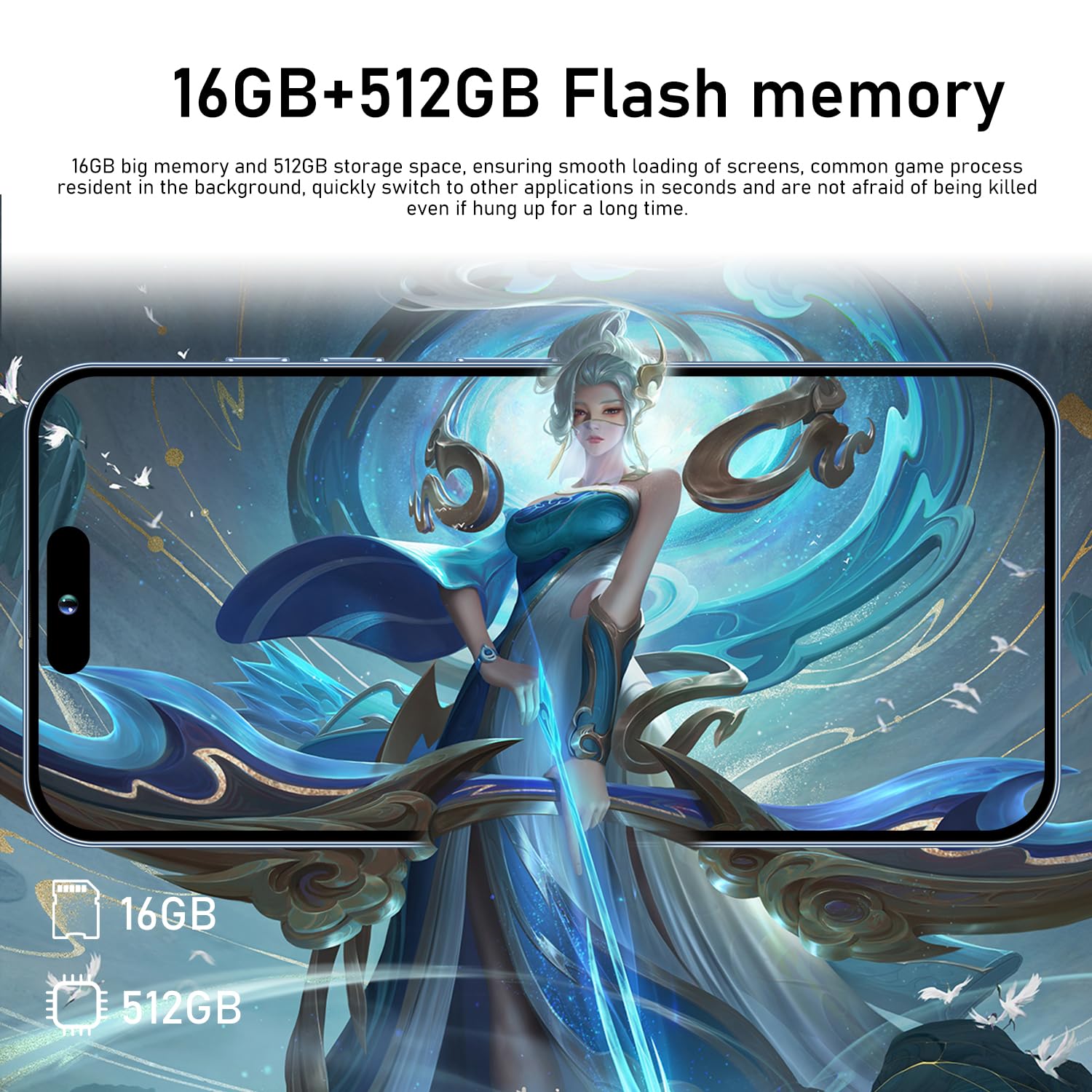 【Android 13 & 16GB+512GB】Android 13 Phone is the lastest version, the excellent compatibility makes the smartphone 5G not obsolete in years. Powerful privacy controls protect you from malicious apps. This unlocked android smartphone has 16GB RAM makes the smartphone keep smooth when handling heavy tasks, running more apps in the background, 512GB ROM Supports expandable storage up to 128GB, Say goodbye to lag.
