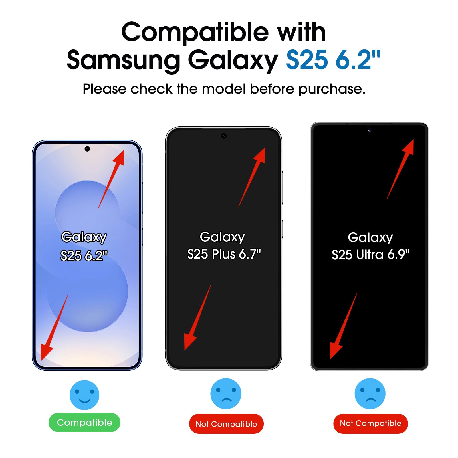 【Only Compatible with Samsung Galaxy S25 6.2"】 Specially designed ONLY for the Samsung Galaxy S25 6.2" 2025 Screen Protector 6.2". Please check your phone model before buying this tempered glass screen protector.