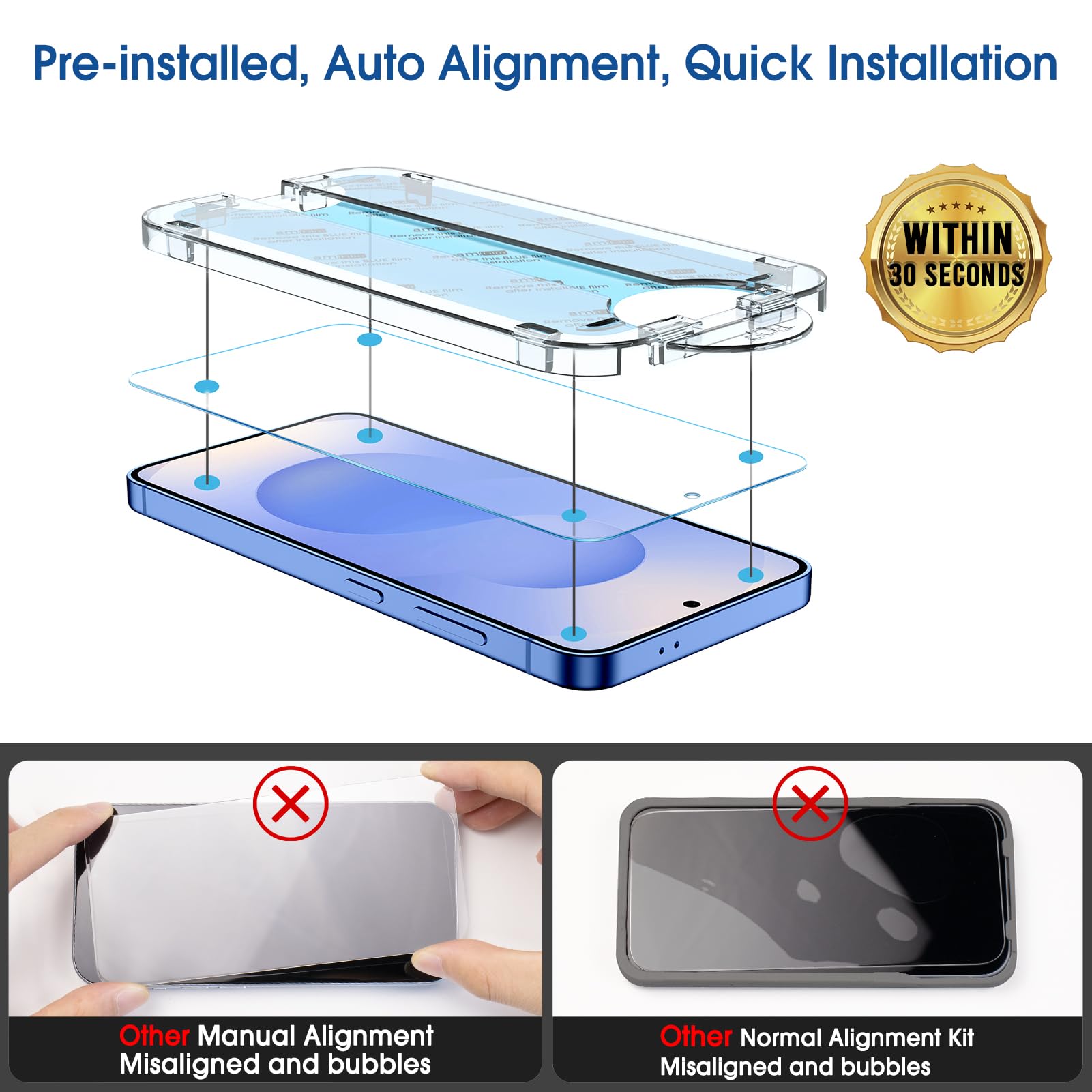 【Auto-Alignment Installation within 30 Seconds!】 Say goodbye to manually misalignment, the samsung galaxy S25 6.2"screen protector is embedded in a plastic frame that fits perfectly over your phone. Set the frame on your phone, swipe down the middle, and done! Perfect installation within 30 seconds! Watch our Installation Video to see how easy it is to use our Innovative OneTouch Auto-Alignment Screen Protector.