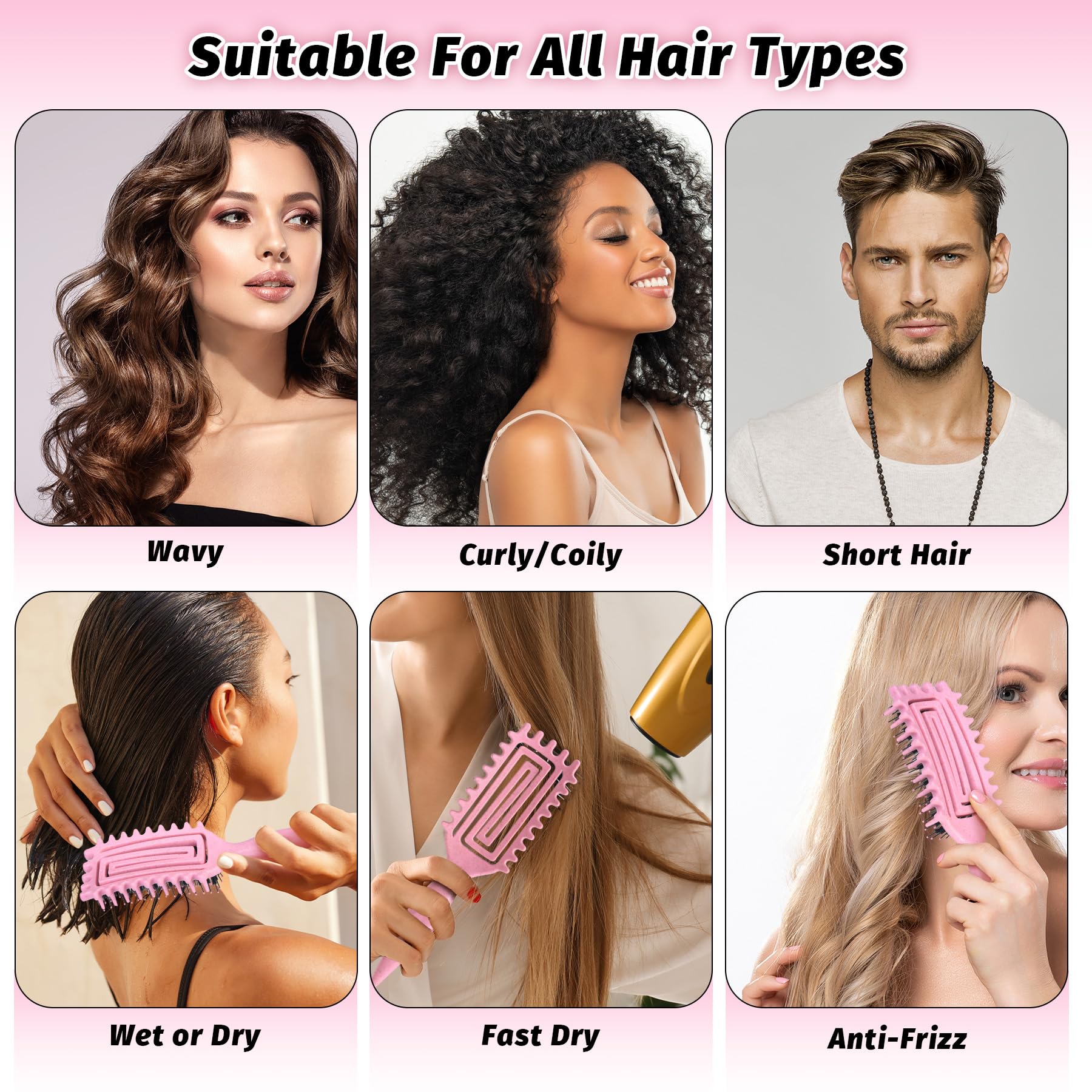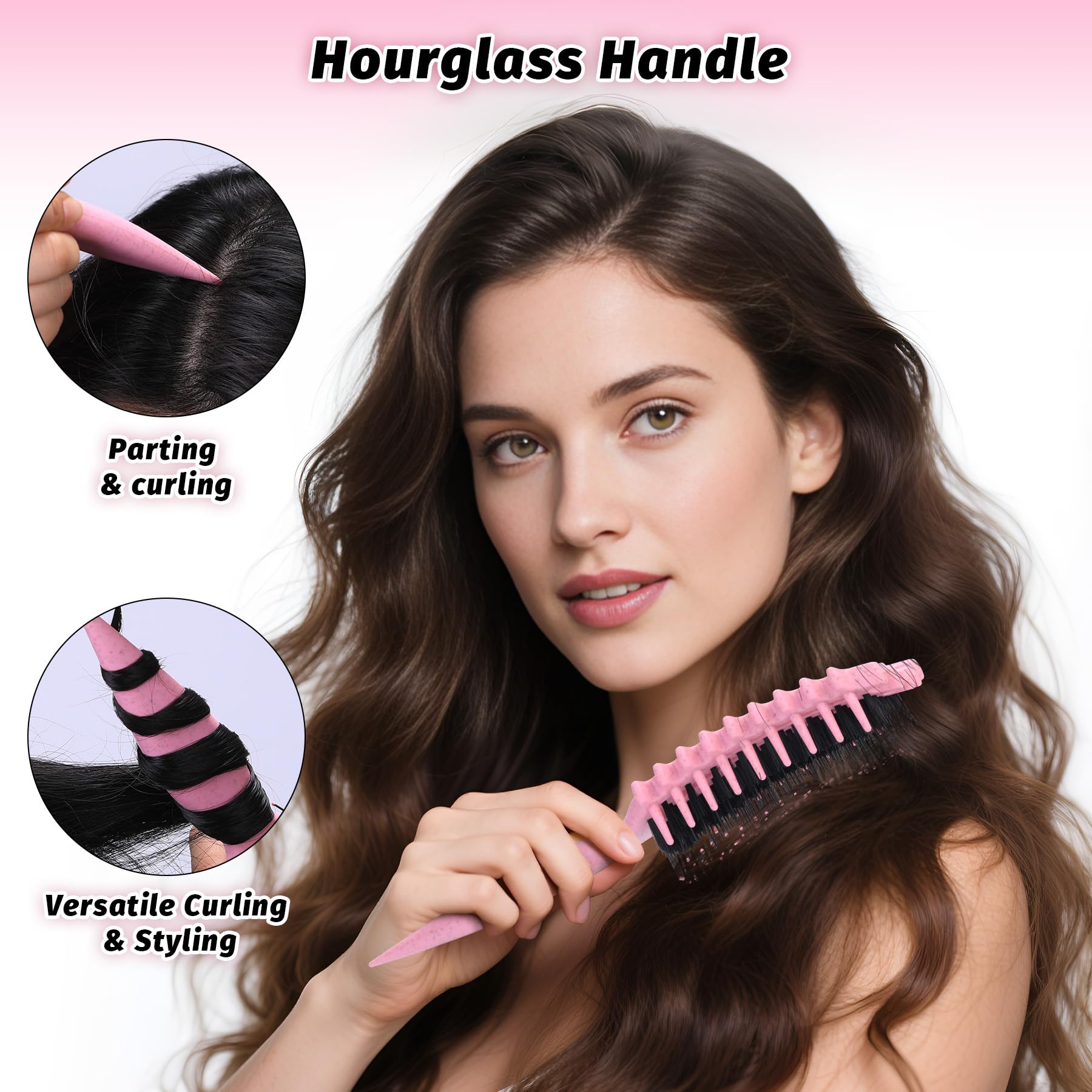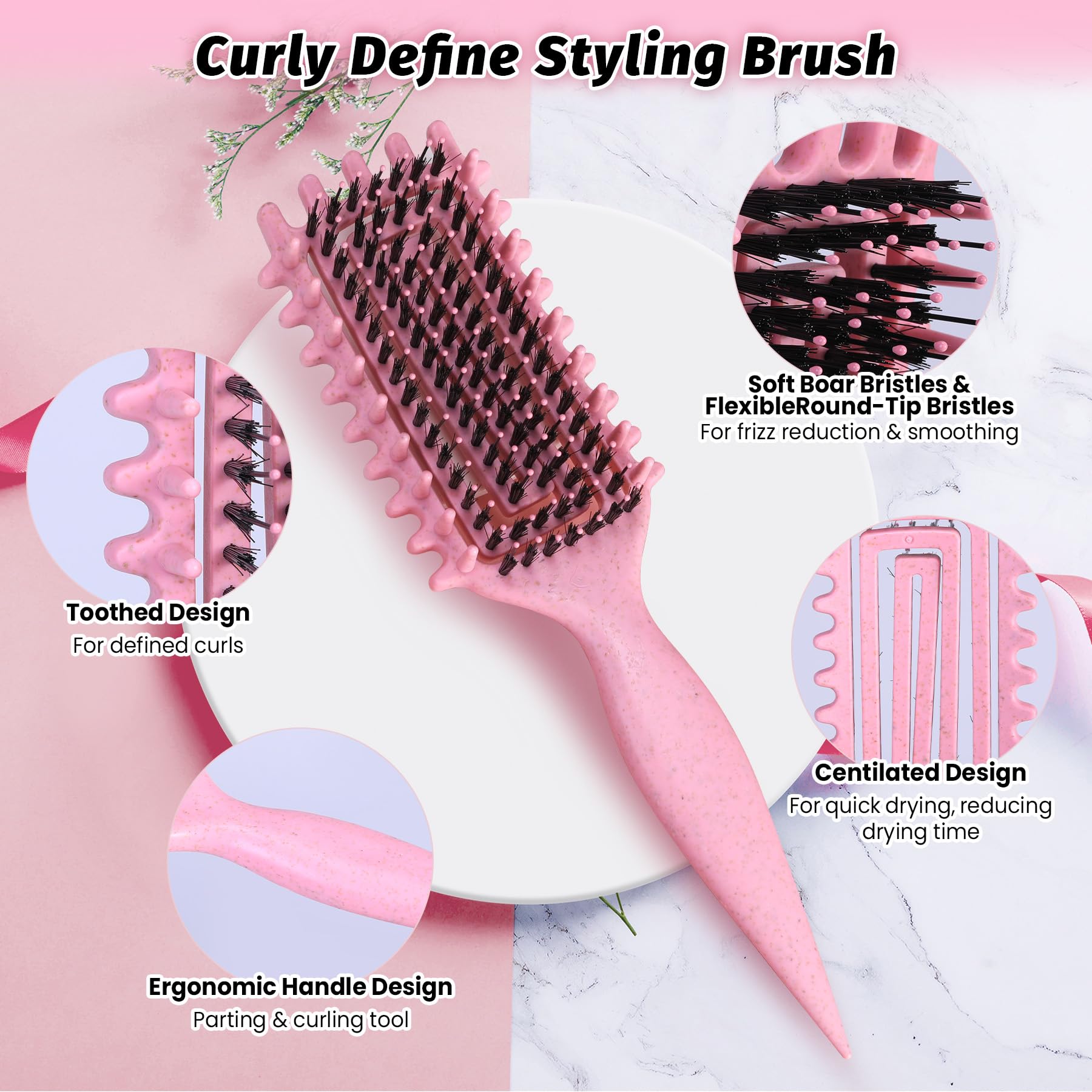 Curly Hair Brush - The curling brush combines soft and rigid bristles with rounded tips and strategically placed bristles define, shape, and detangle curls effortlessly. Featuring a special teeth design that helps to evenly divide hair for a more convenient styling experience.