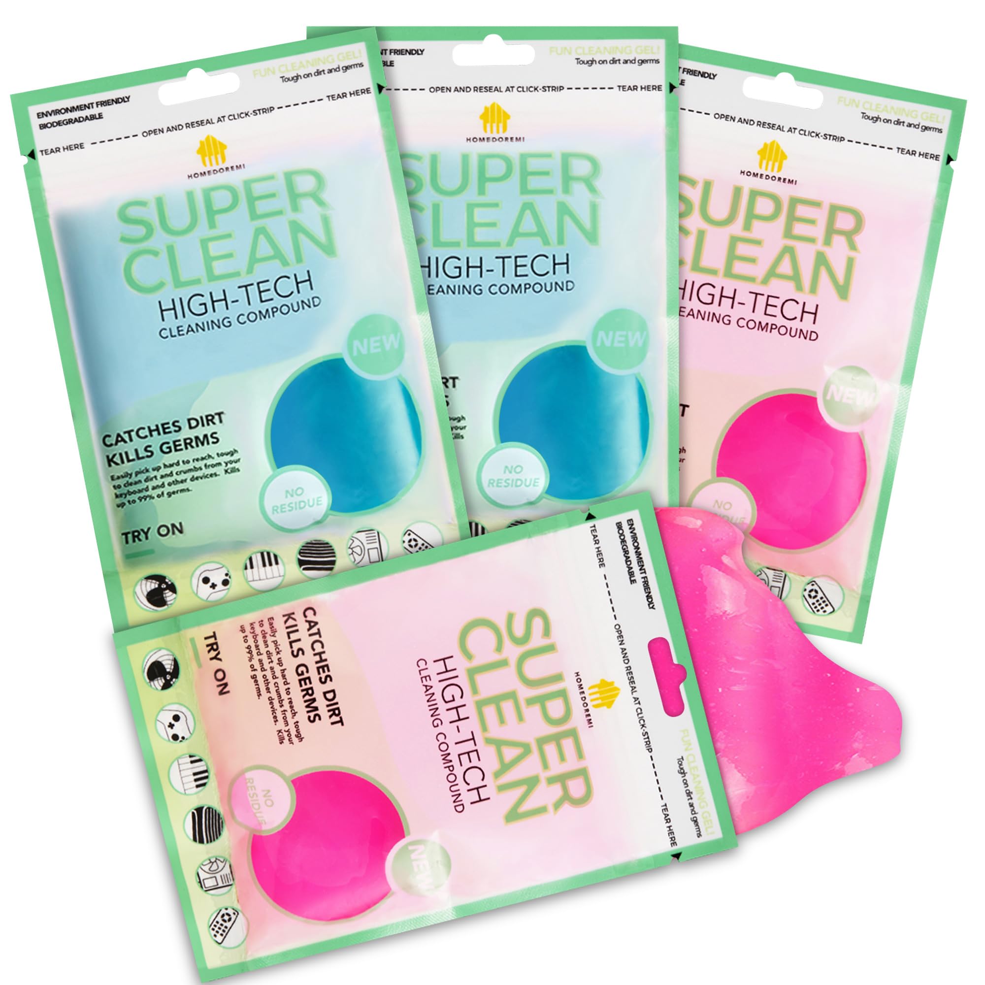 REUSABLE & EASIER STORAGE - Those keyboard cleaners can be used over and over again till the compound turns nontransparent. Easier Storage - 320g total. Independent bag packaging is more convenient, not take up storage space in the car. Put the cleaning goo back in the sealed bag after use and Store in a cool environment away from direct sunlight, high or low temperatures. (Note: don’t wash the cleaning gels in water.)