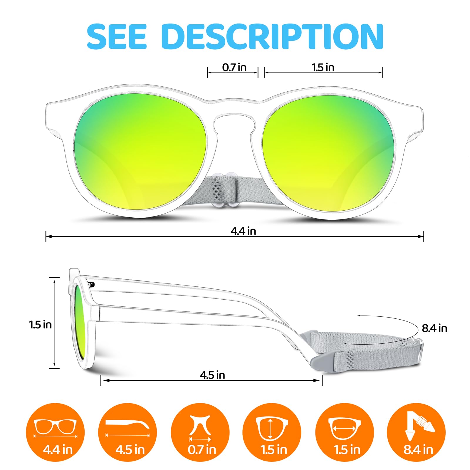【Specifications】The glasses are designed with optimized dimensions to ensure that the proportions of the lenses and frames are suitable for a baby's facial features.