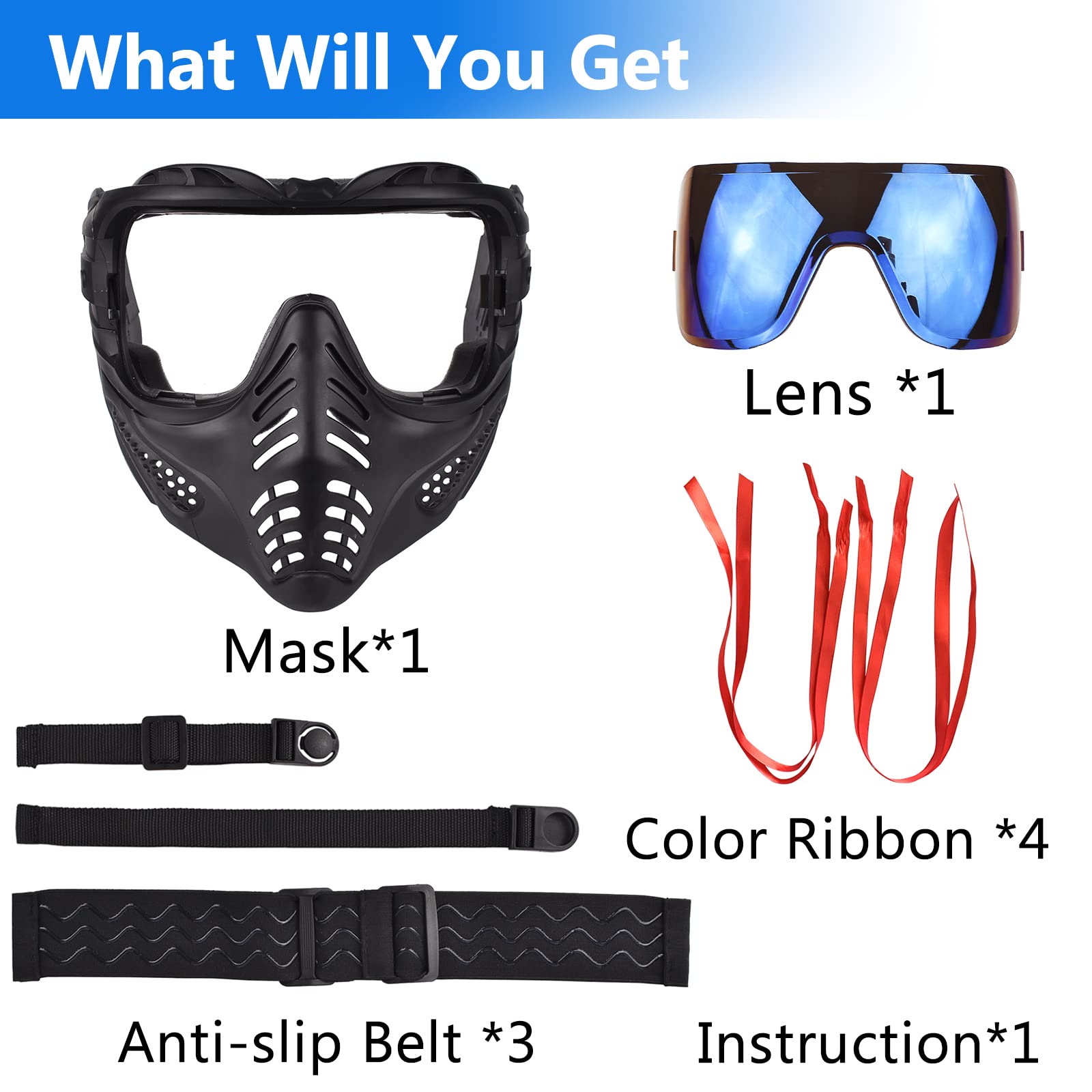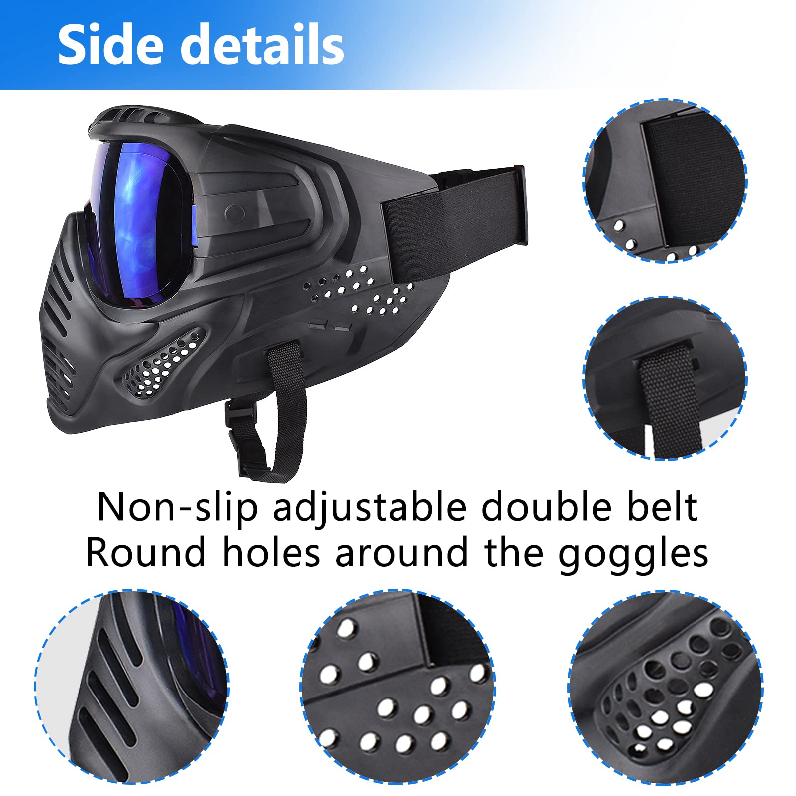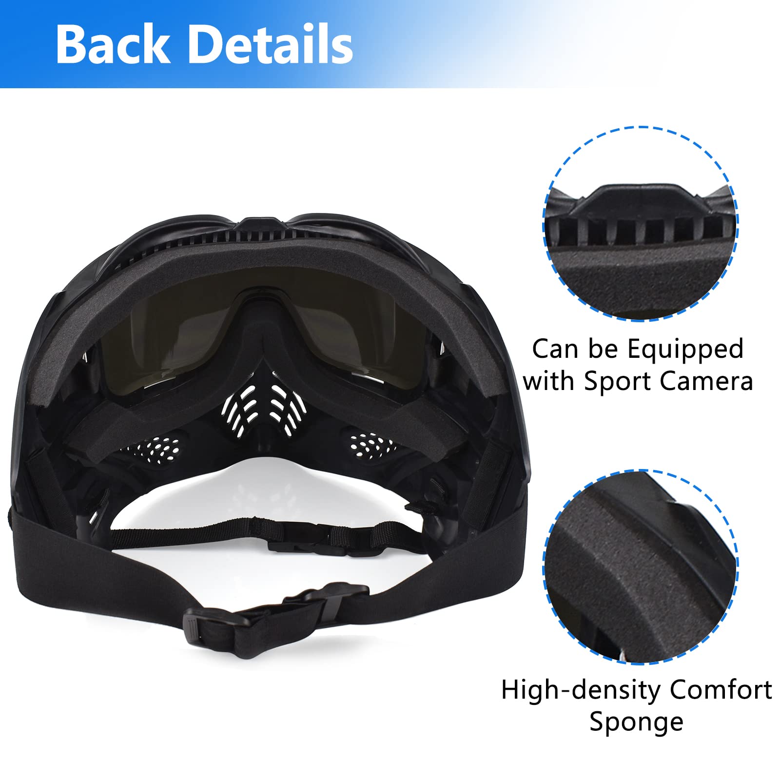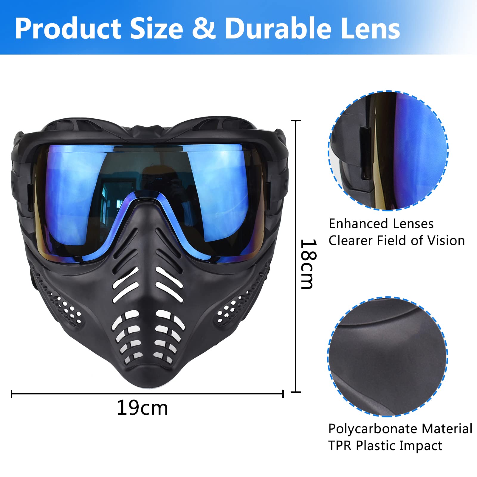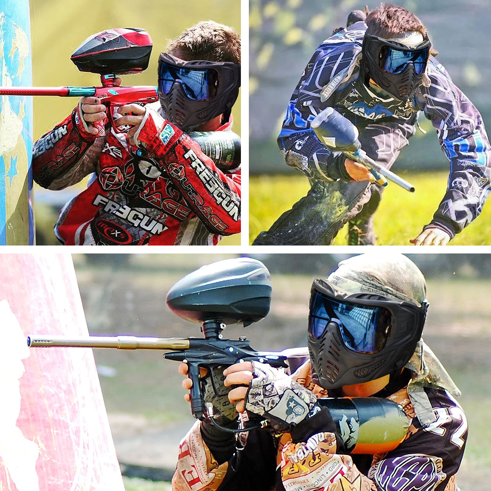 Lpaintball masks for men. ightweight & Anti-collision - Tactical mask use polycarbonate material and TPR plastic impact resistant composite which can be bent closer to 90°, this makes goggles difficult to be oppressed and cause damage. And only weighing 0.64lb, like no weight on the head.