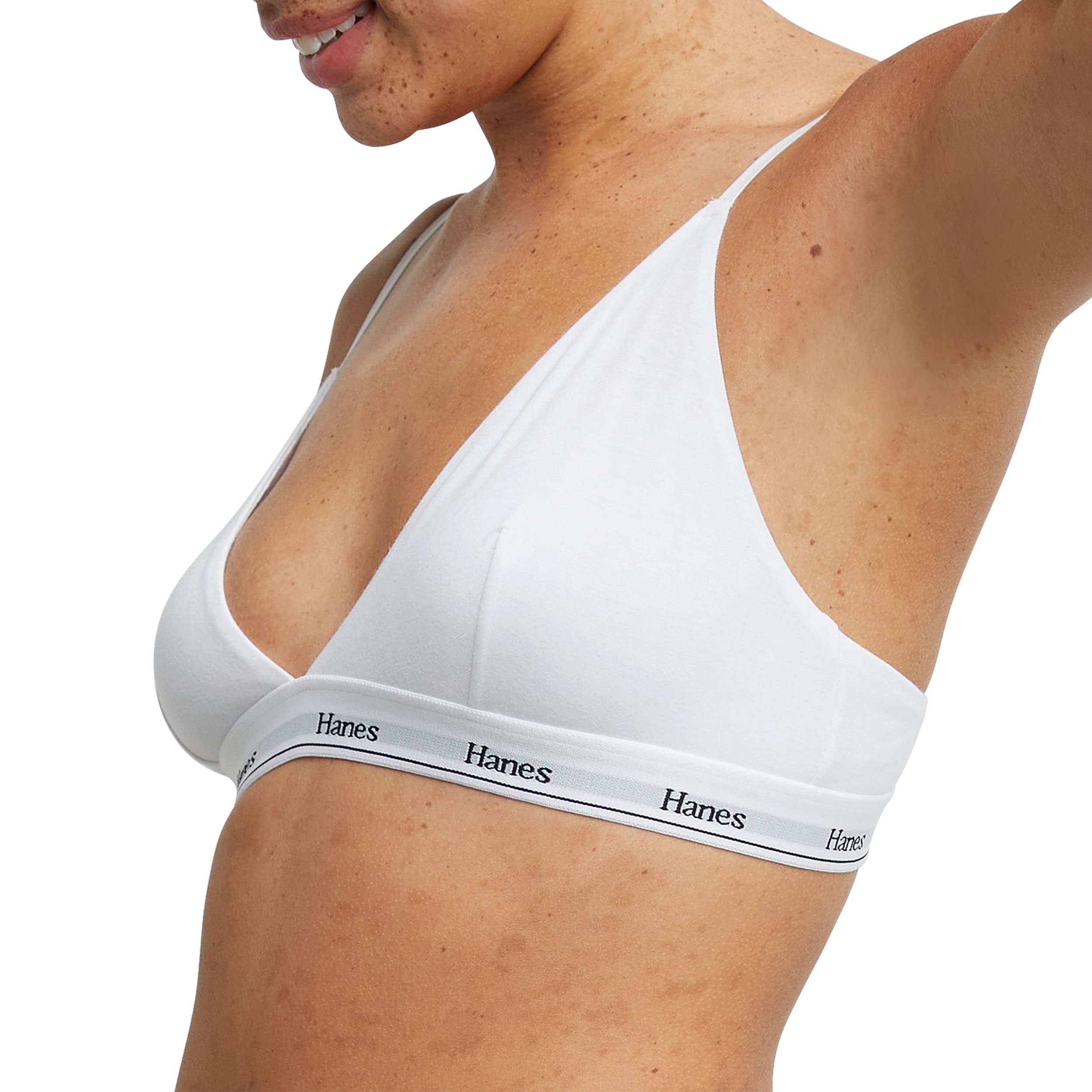 Description Hanes Originals® women's cropped bralette is a back-to-basics look that pairs perfectly with your best tee or tank. Made with signature cotton-rich fabric designed to leave your skin feeling happy and free. ComfortFlex Fit® bras are designed to fit you while Cool Comfort™ technology keeps you feeling fresh and dry all-day long. Designed with classic hook-and-eye closure, this comfortable style offers adjustable straps for the perfect, custom fit. Finished with a plunging V-neckline for added style, this must-have bralette is available in a convenient pack of two.