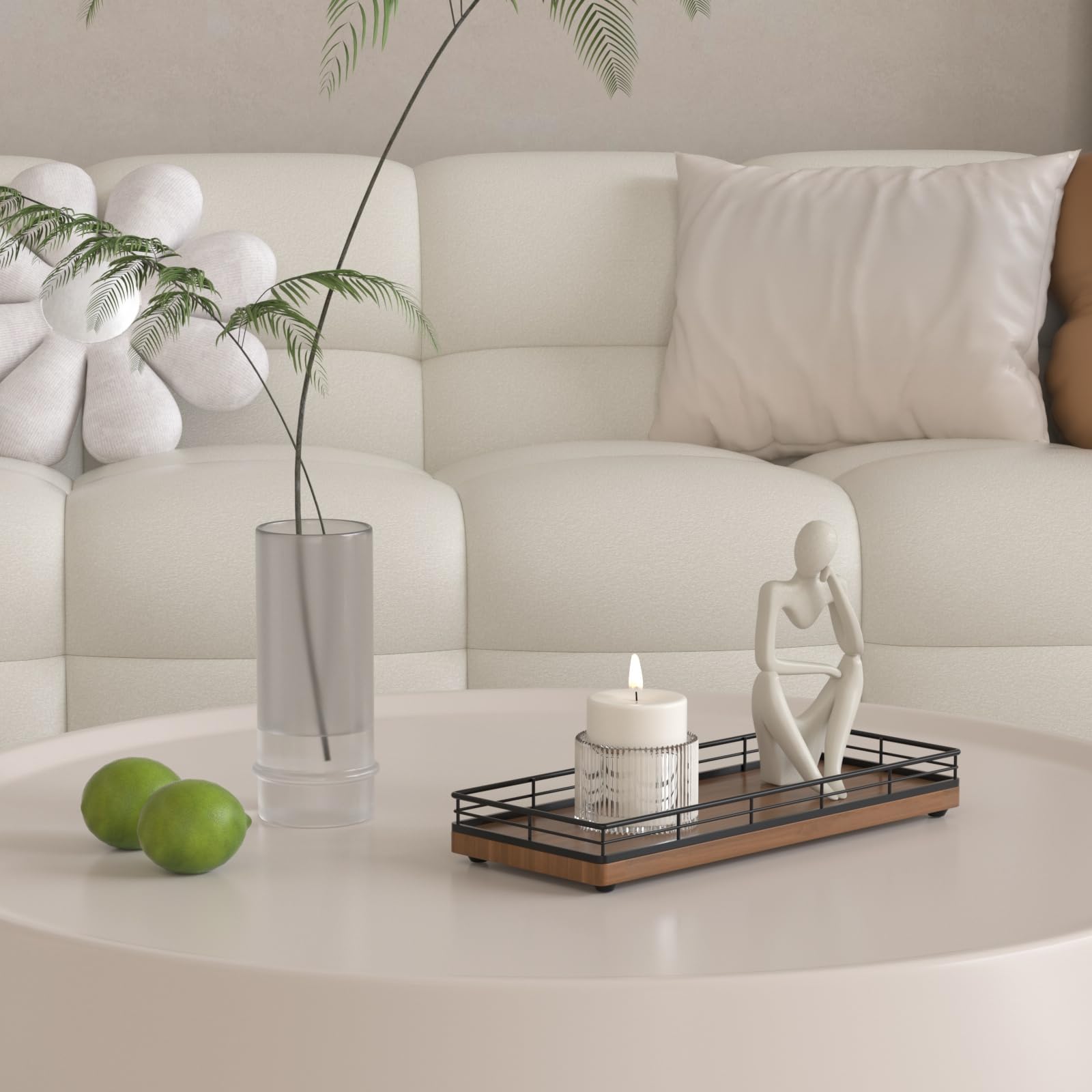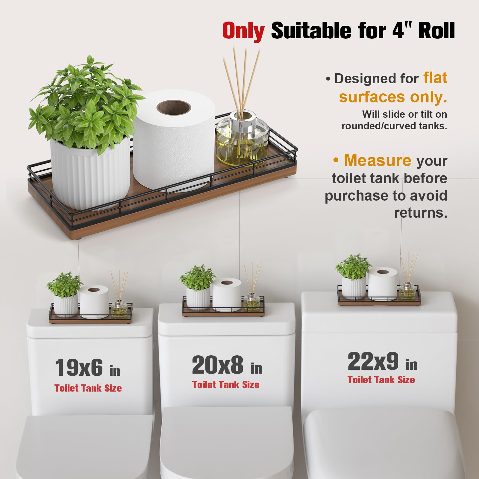 Versatile Functionality: Elevate your daily routine with our bathroom counter tray; Neatly arrange bathroom essentials like soap, toothbrushes, cotton swab and lotions, keeping your countertop tidy; Add a touch of elegance to your dresser by using the vanity tray to showcase perfumes, jewelry, and cosmetics; Impress your guests with neatly arranged hand towels and toiletries presented on the small tray or use it as a toilet tank tray