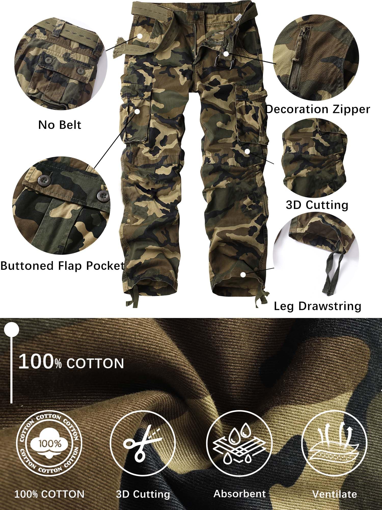 Product material: The cargo pants for men are made of 100% Cotton which is sweat-absorbent, breathable, soft and comfortable, ripstop,durable and tough, long wear not deformation,easy care to wash and wear. Camo Cargo Pants Camouflage overalls are more durable. Classic straight leg, relaxed fit for effortless movement.