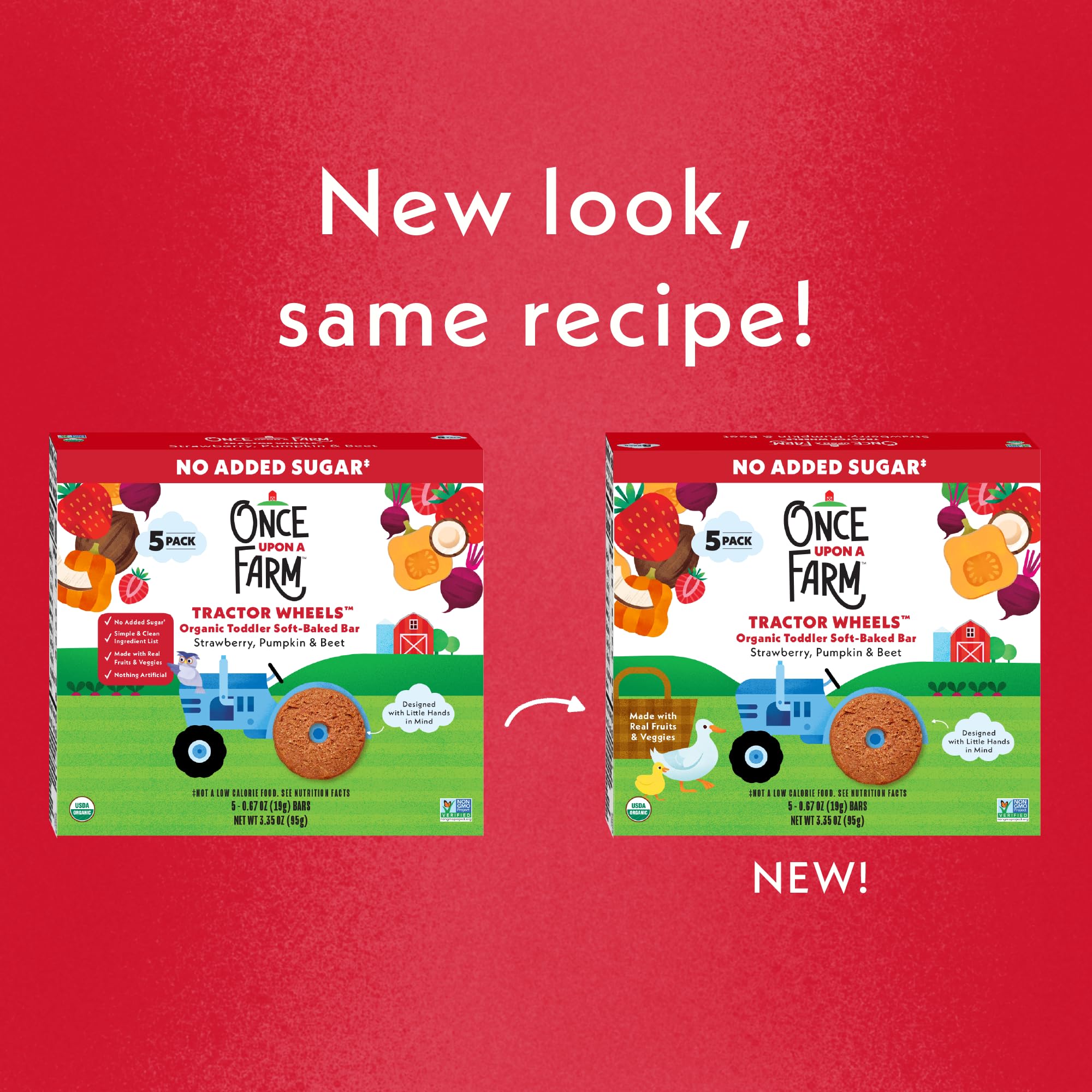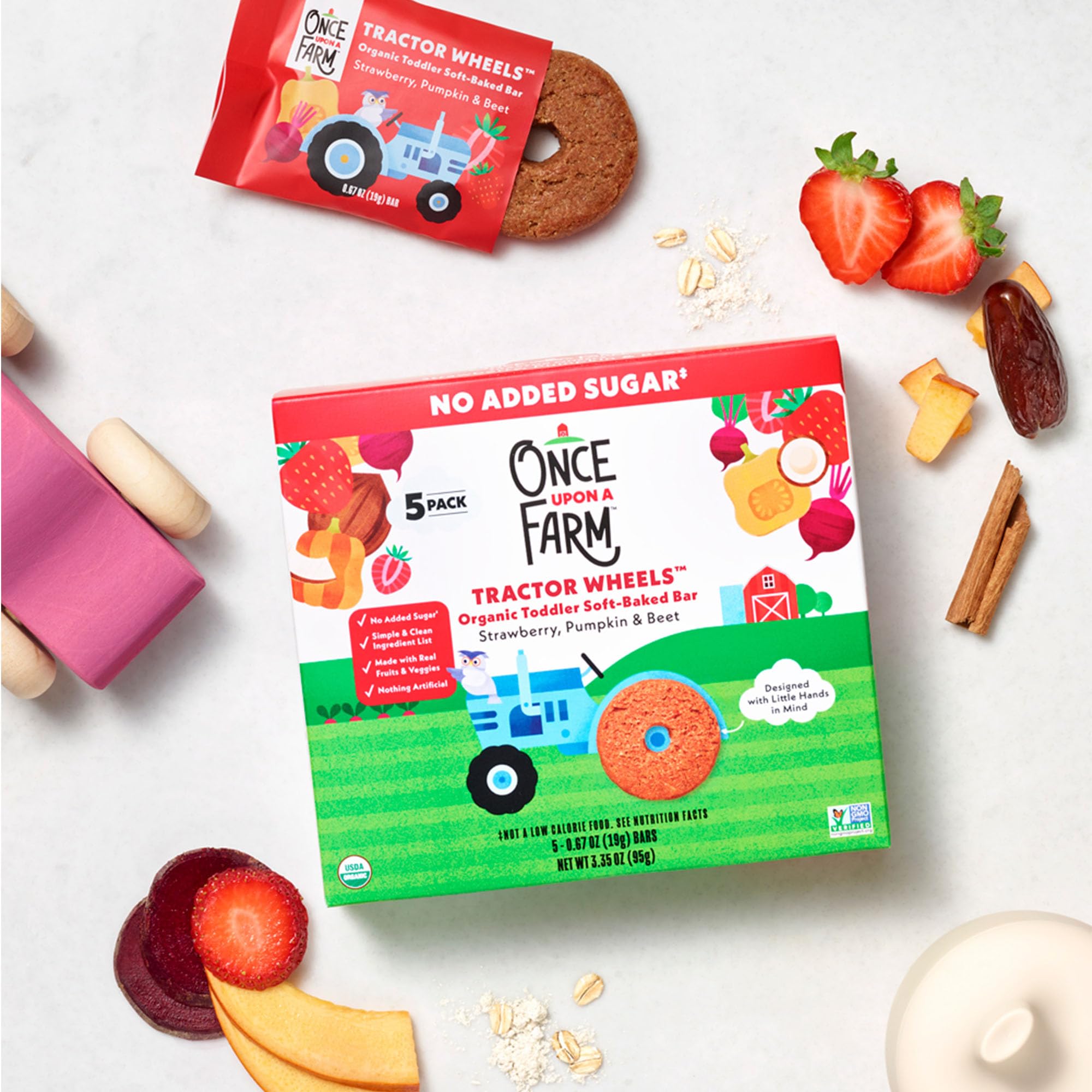 DESIGNED WITH TODDLERS IN MIND: Designed for ages 12+ months. These Tractor Wheel shaped bars fit little hands and encourage smaller bites — perfect for self-feeding. Not a low-calorie food.