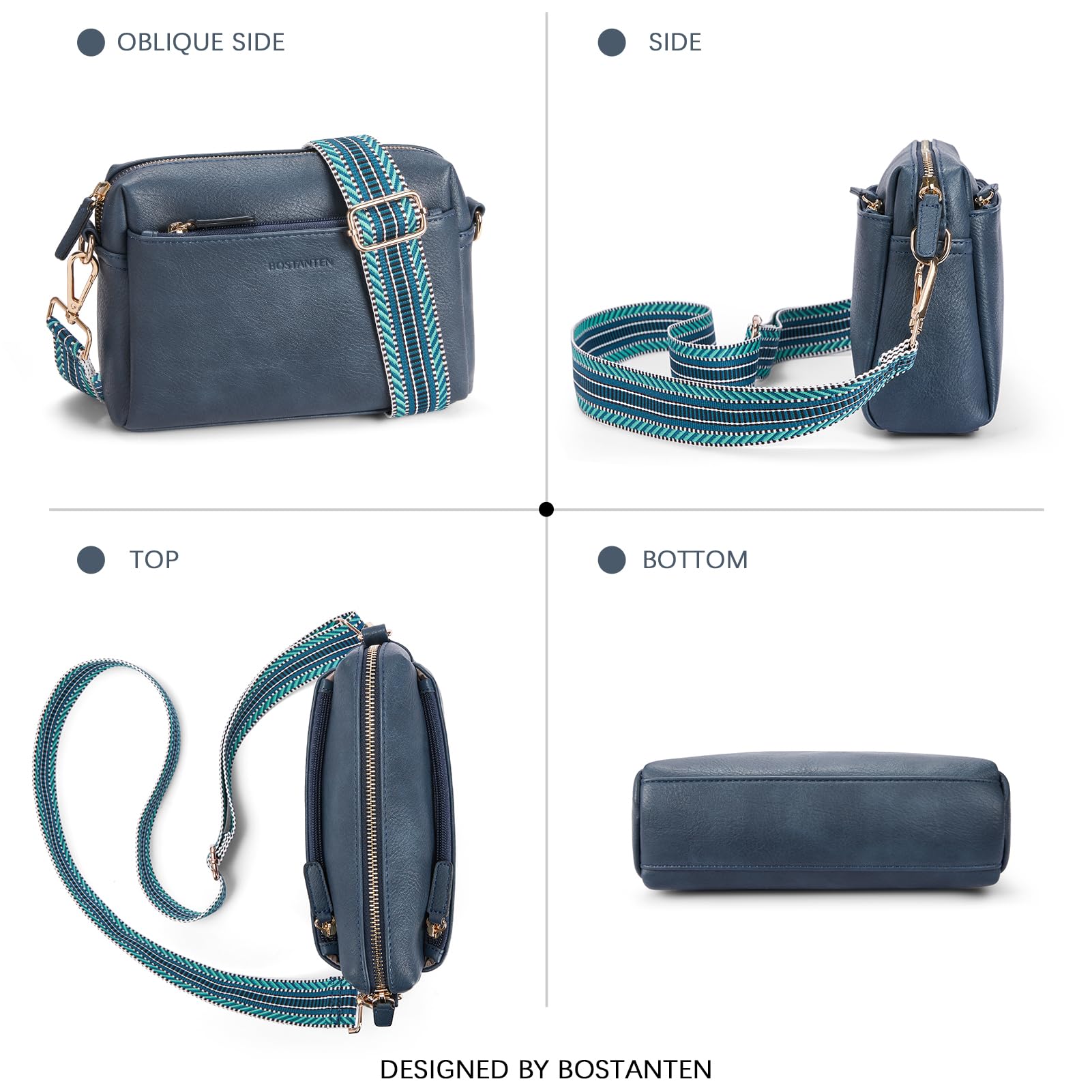 Premium Leather Material: BOSTANTEN small crossbody purse is made of premium vegan leather with a unique texture. Easy to clean & No any weird smell. This crossbody purse with GOLD-TONE hardware always looks young and fashionable