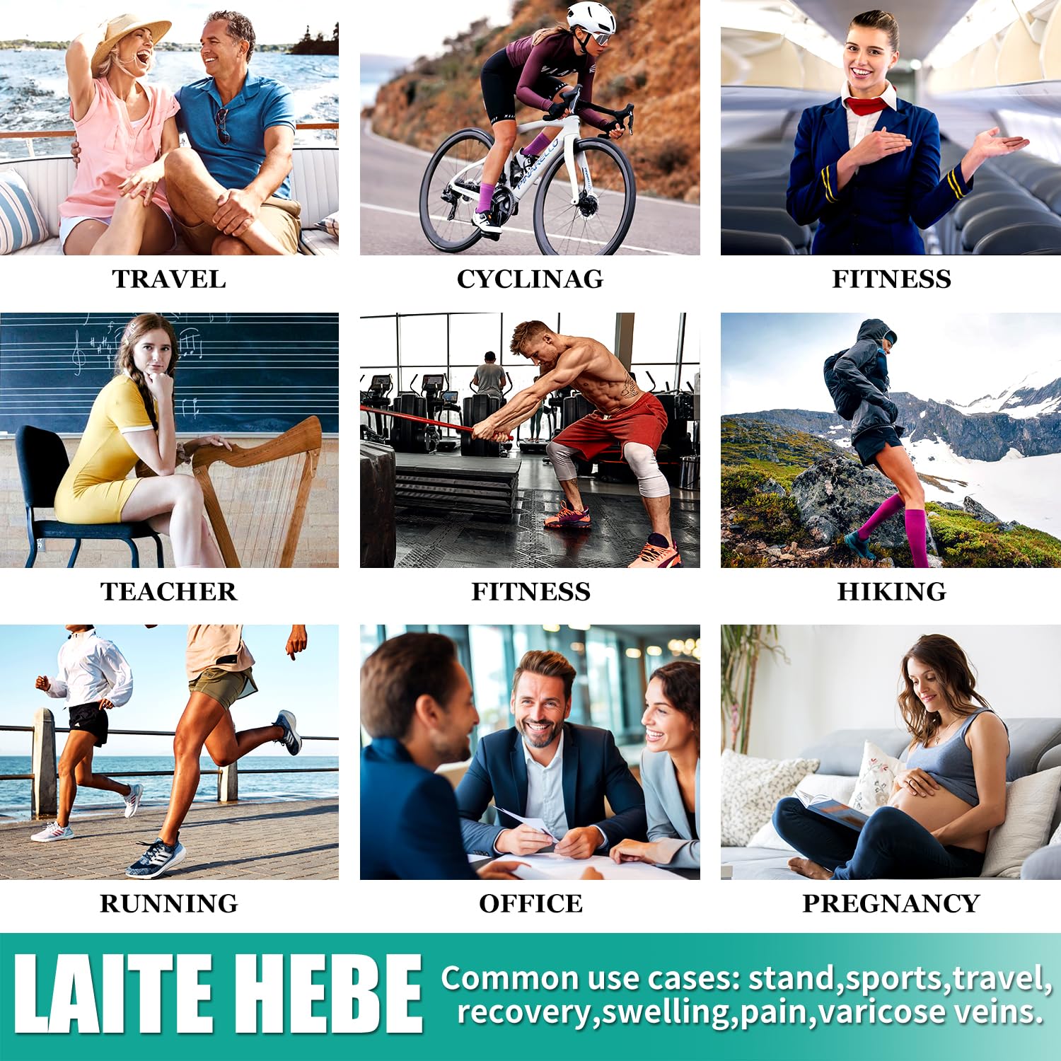 LAB TESTED GRADIENT COMPRESSION -Our Graduated Compression Socks put pressure in just the right spots,work by creating a "pressure gradient"(using graduated compression of 15-20 mmHg)which helps to push oxygen-poor blood out of the feet and legs,and back to the heart. More blood pumping means more Healthier legs and less pain+swelling.Great for long periods of sitting or standing, endurance sports, flying and travel, post-workout recovery, pregnancy, and spider & varicose veins.