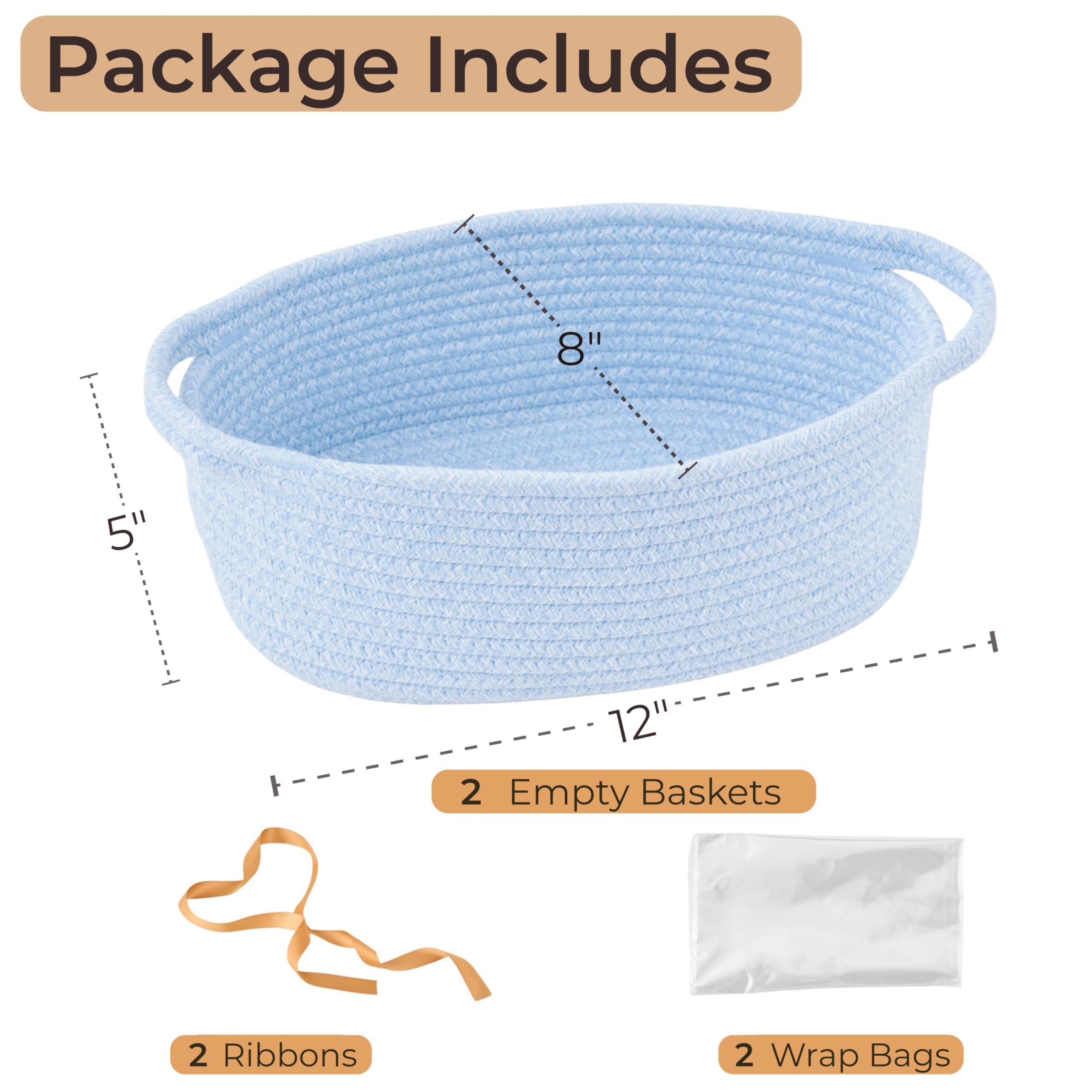 Complete Gift Wrapping Sets: Include 2 empty woven baskets, 2 wrap bags, and 2 ribbons; perfect for creating beautiful and personalized gift presentations