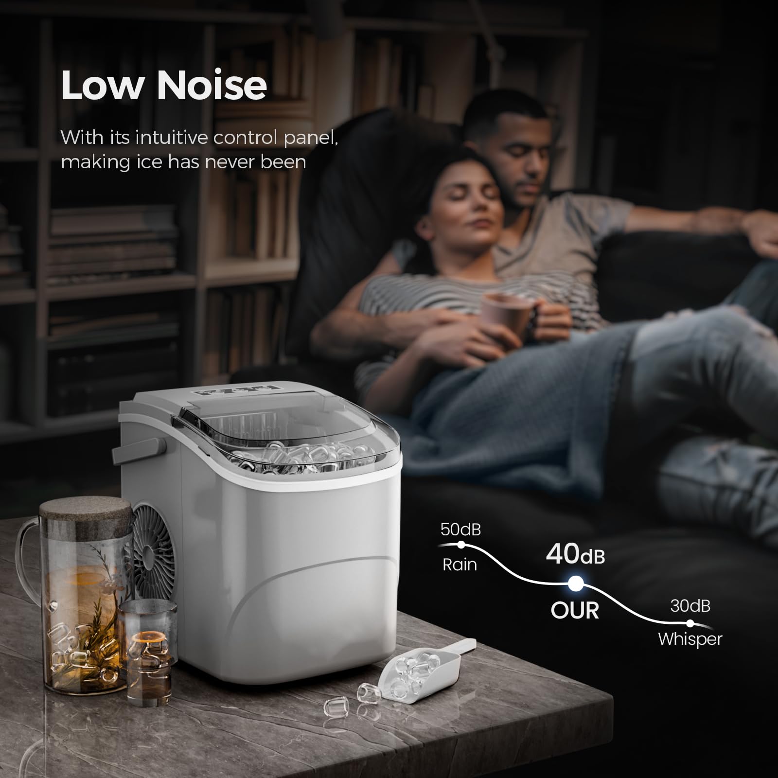 【Portable and Convenient】Perfectly portable, this portable ice maker is easy to take wherever you go. Whether you’re heading to a picnic, a camping trip, or simply moving it from the kitchen to the living room, it’s lightweight and designed for easy transport.