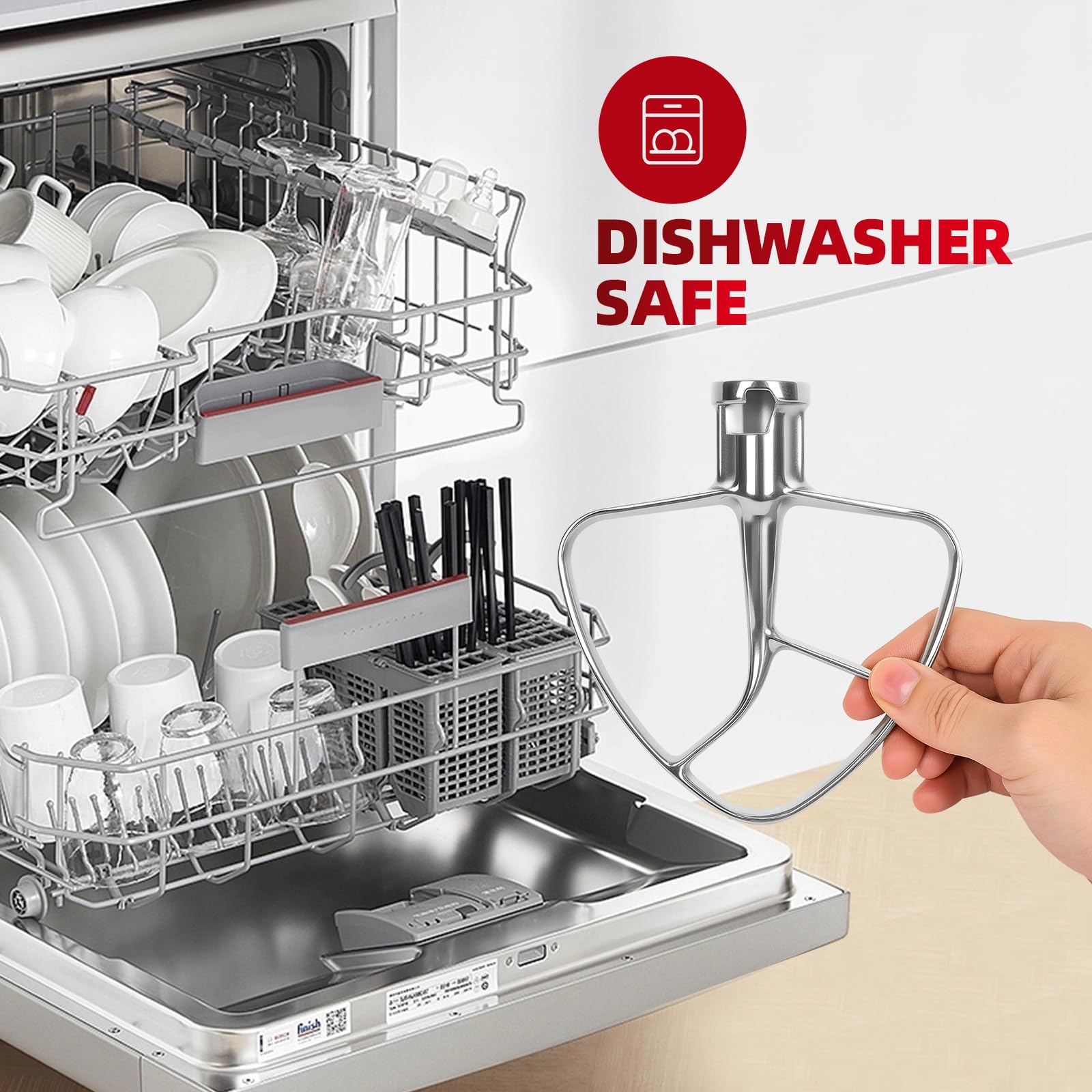 Dishwasher Safe & Food Safety - for kitchenaid paddle attachment polished stainless steel for easy cleaning and dishwasher safe, while the food-grade material ensures safe contact with all your ingredients.