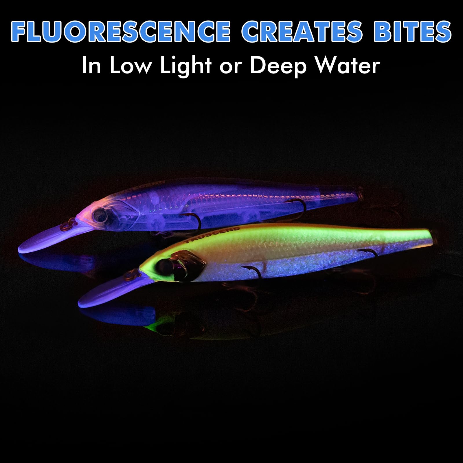 EXTEND YOUR FISHING BITE WINDOW: The pack has different fluorescent effects. This artwork make your lure more visible in various situation, such as dawn, dusk and night time. It can effectively extends your productive fishing time and allows you to effectively target fish in river, lake, pond and inshore water.