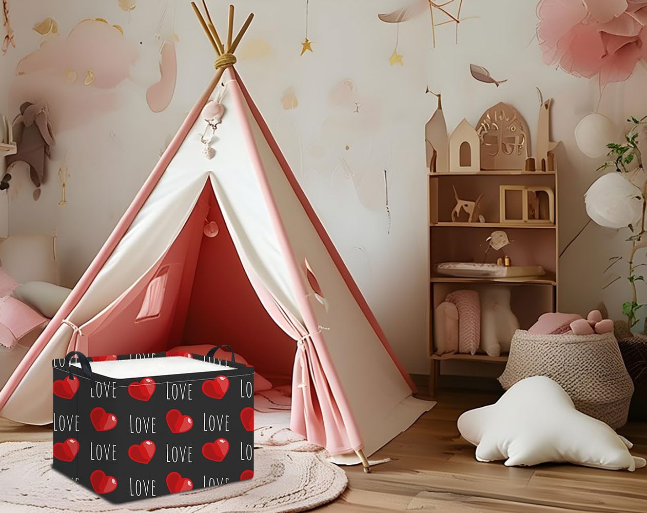FOLDABLE BASKET SIZE: 14.9”L×10.2”W×9.8”H inches. Save on space when not in use and fold flat for easy storage, Perfect for gifts, books, clothes, games, doll accessories, or match-box cars.
