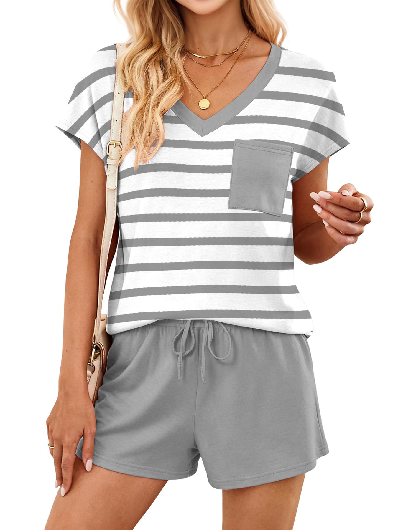 Design: Side-pocket shorts with relaxed fit & adjustable drawstring offer comfort and convenience; the trendy V-neck cap-sleeve top also works as a chic summer piece