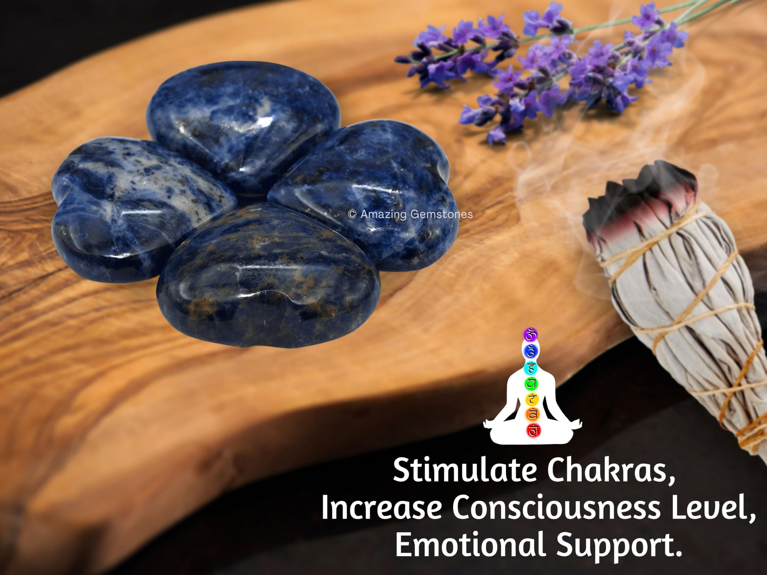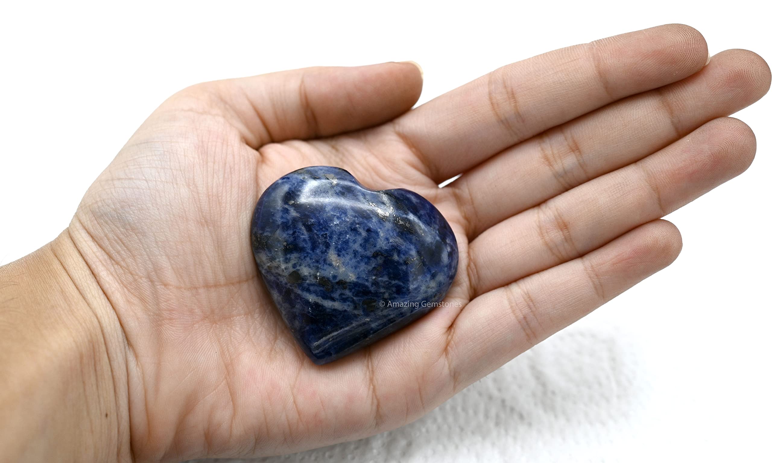 Sodalite Crystal Heart Palm Worry Stones are polished heart shaped stones that can be used for Back, Neck, Face and Feet Massage therapy, Chakra Balancing, Reiki Healing, Crystal Grid Meditation and many other esoteric healing practices.
