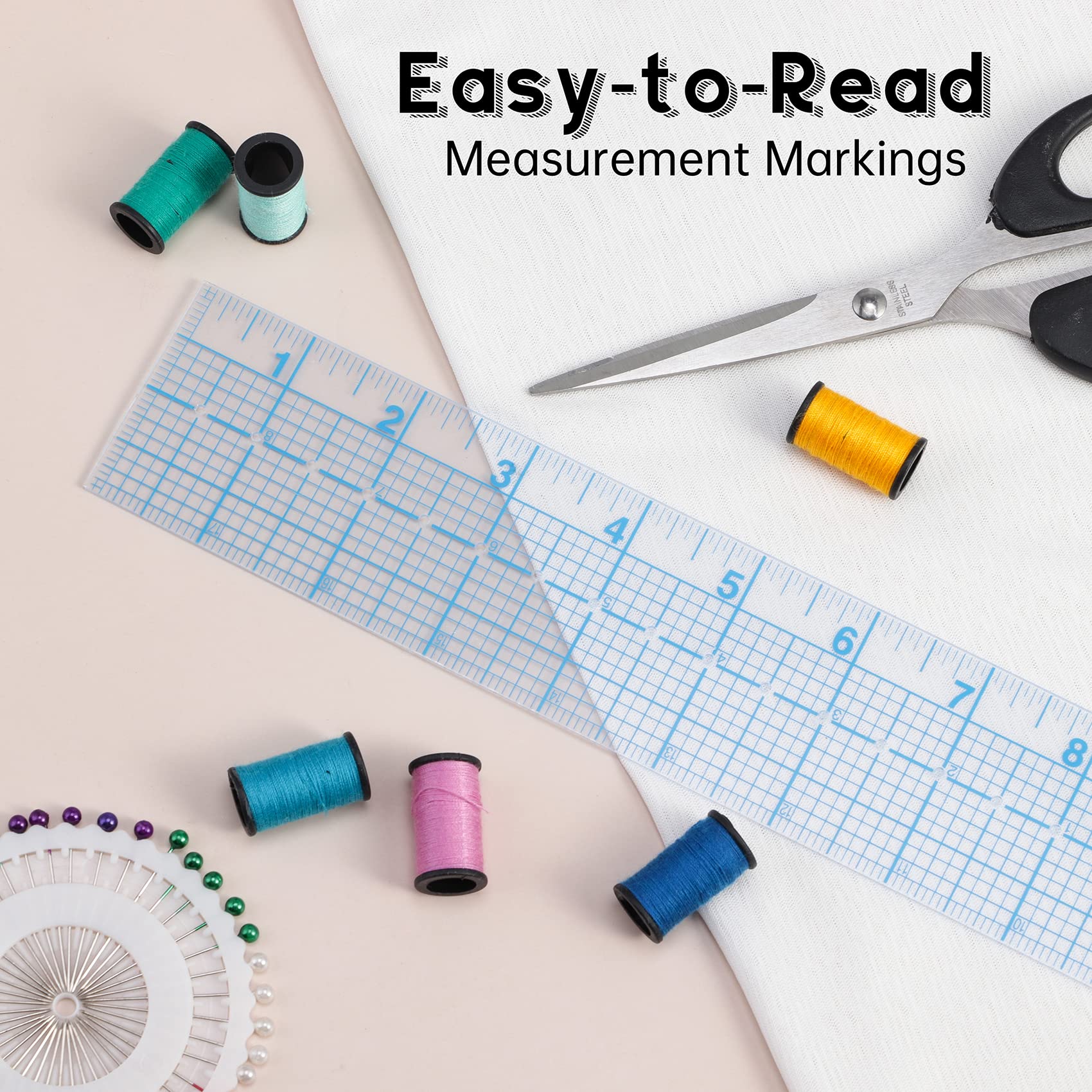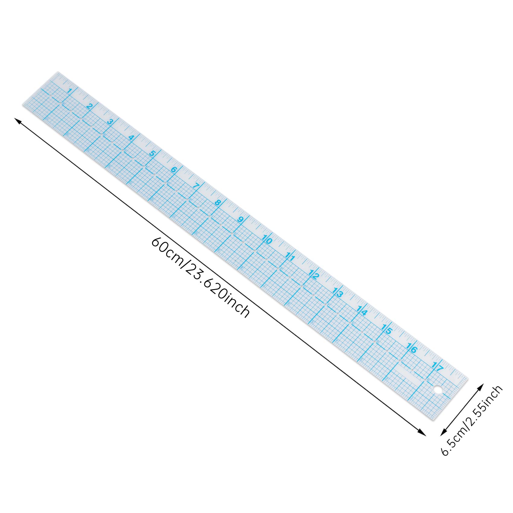 The transparent ruler allows you to see your project under the ruler for accurate positioning and marking.