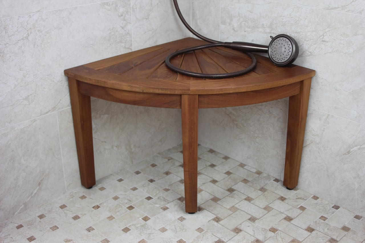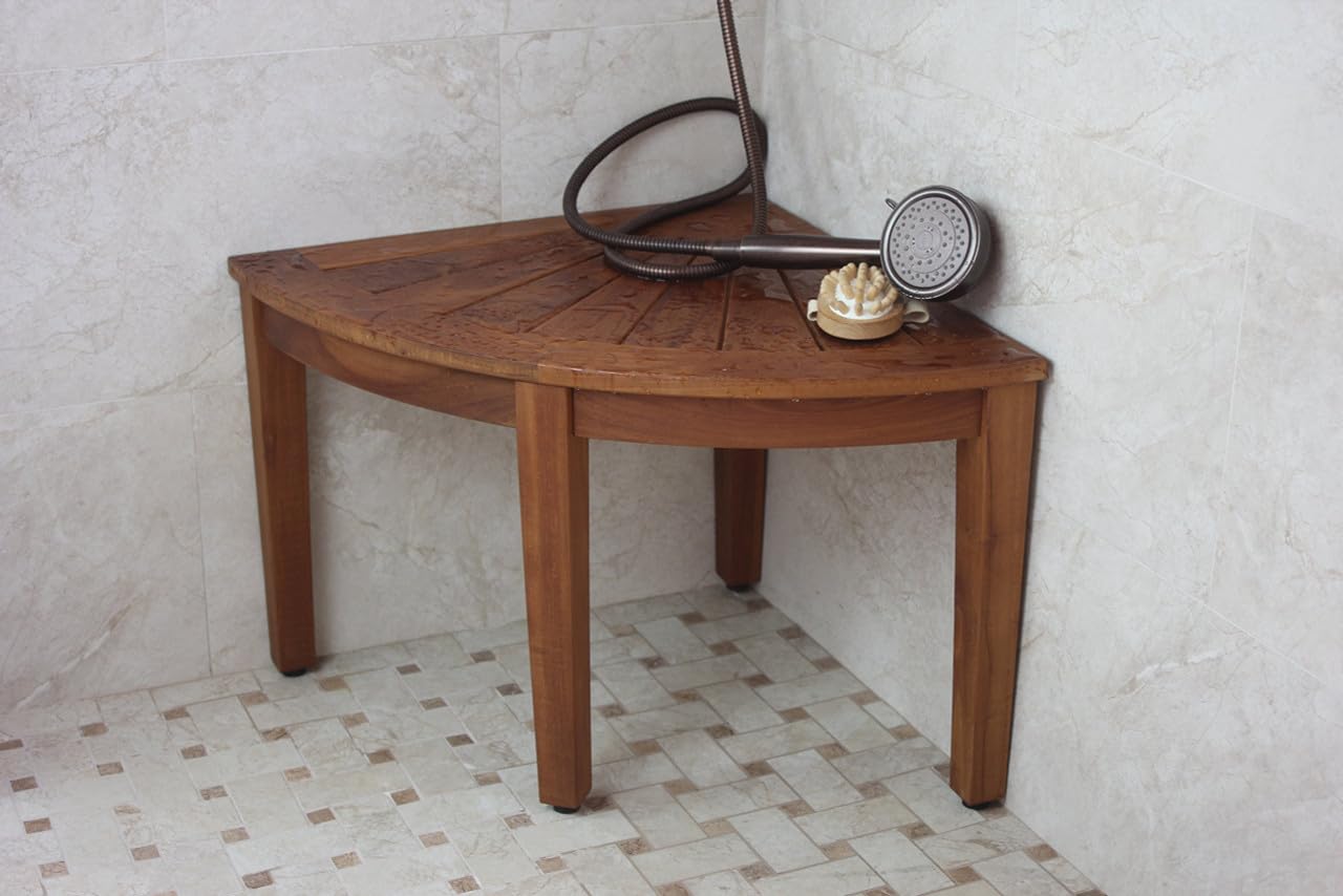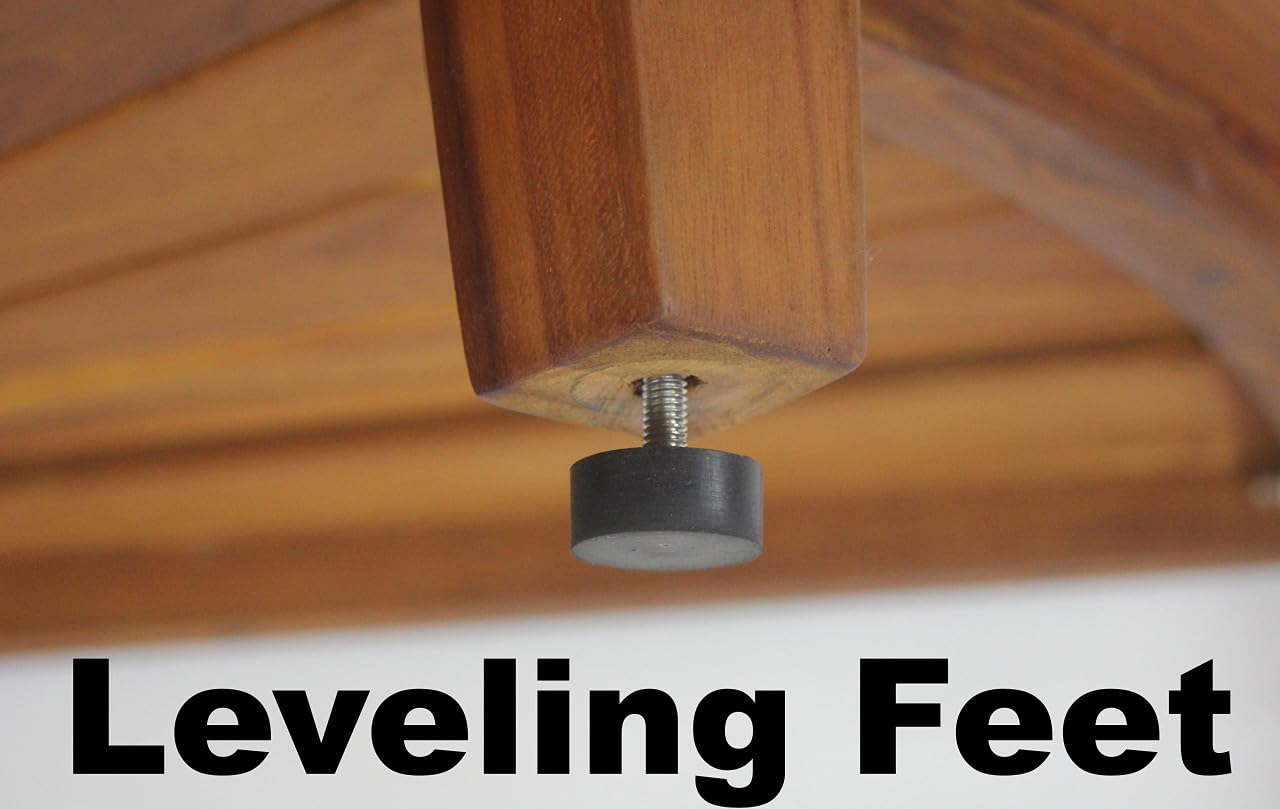 HIDDEN STAINLESS STEEL NON-CORRODING HARDWARE & RUBBER GRIPPING LEVELING FEET FOR ADDED STABILITY! Enjoy the natural wood without the interruption of metal screws and bolts! We've gone out of our way to design furniture that hides the Stainless-steel metal hardware. Shower floors are unlevel and our adjustable, rubber gripping feet solve that issue.
